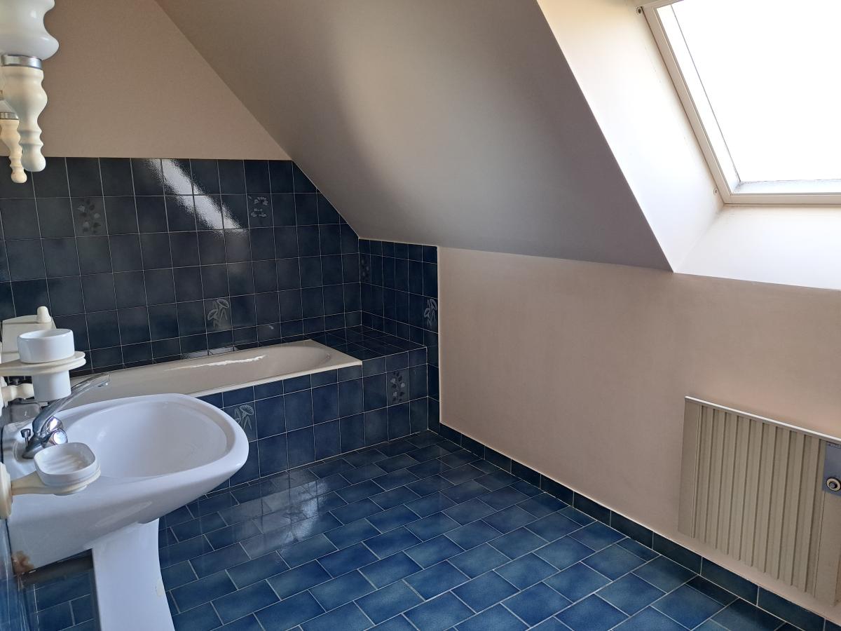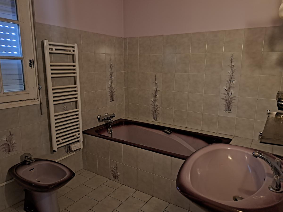 - au premier étage : palier avec placard, salle de bains (baignoire et lavabo), WC, et trois chambres,