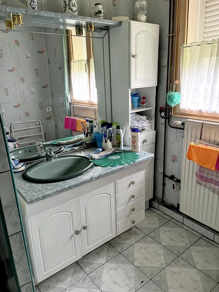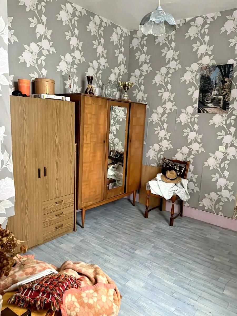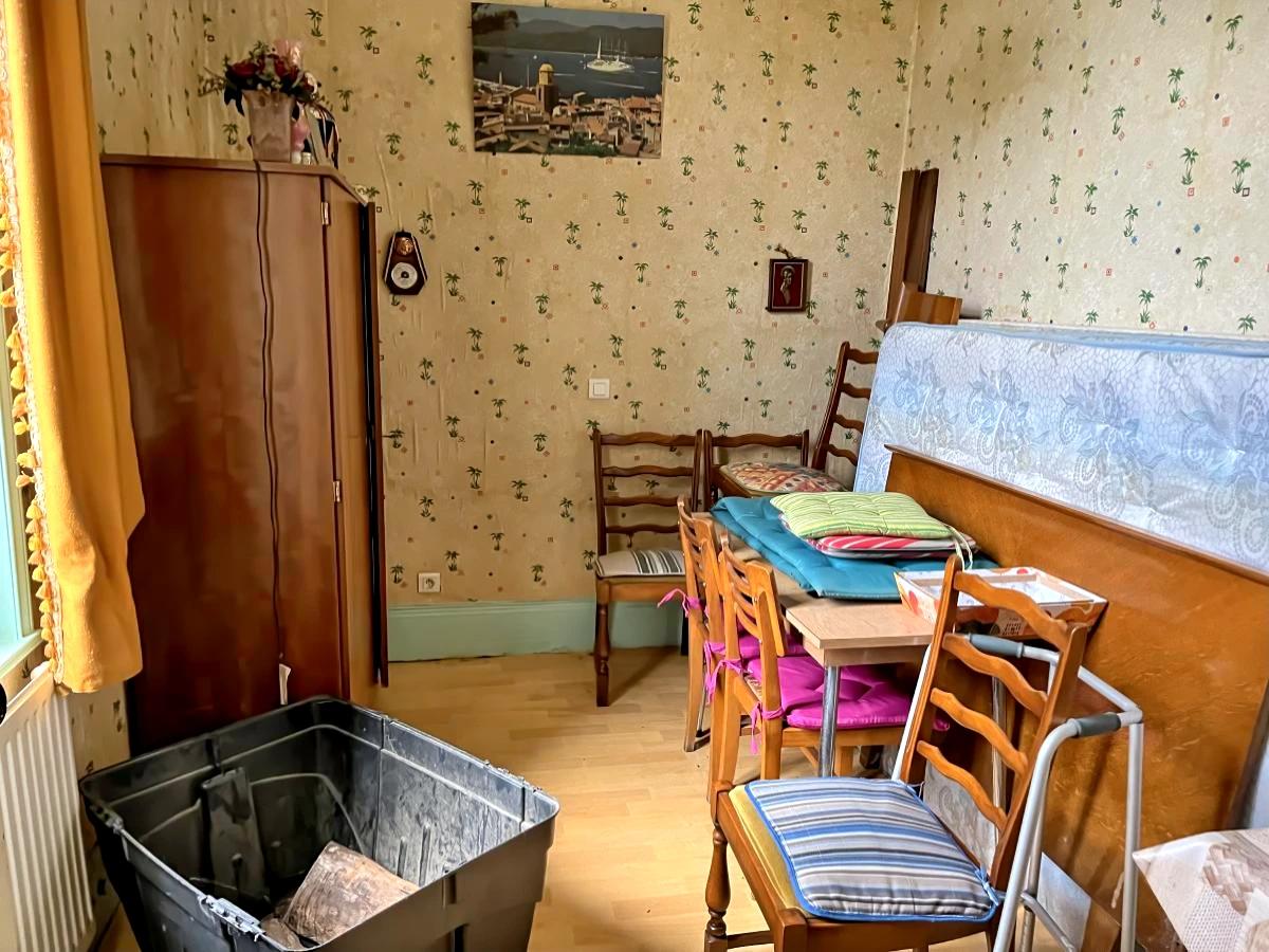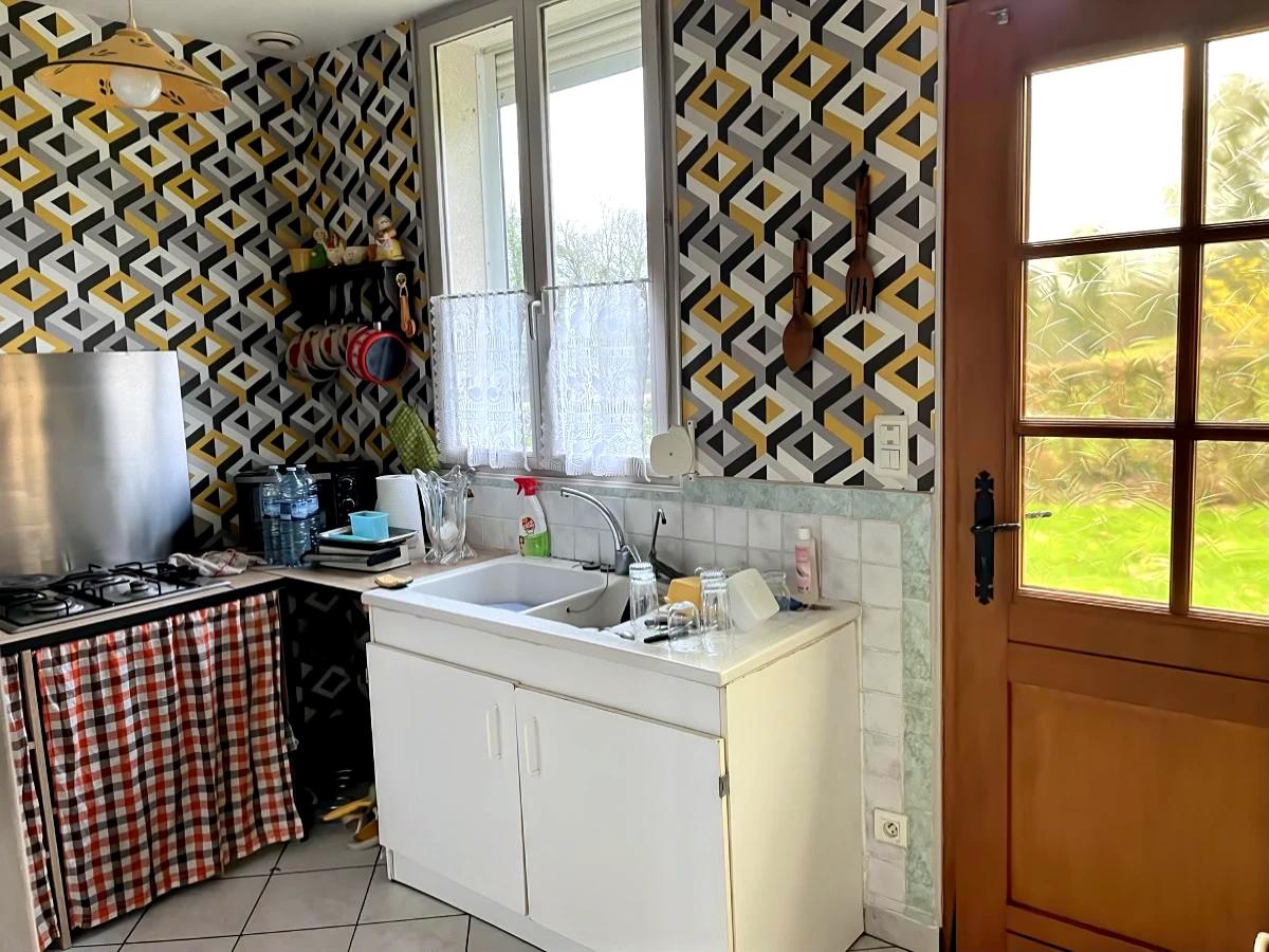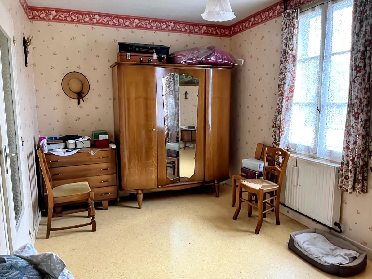 Elle se compose d’une entrée, grand séjour avec insert, cuisine, cellier- buanderie, trois chambres, salle d’eau, WC.