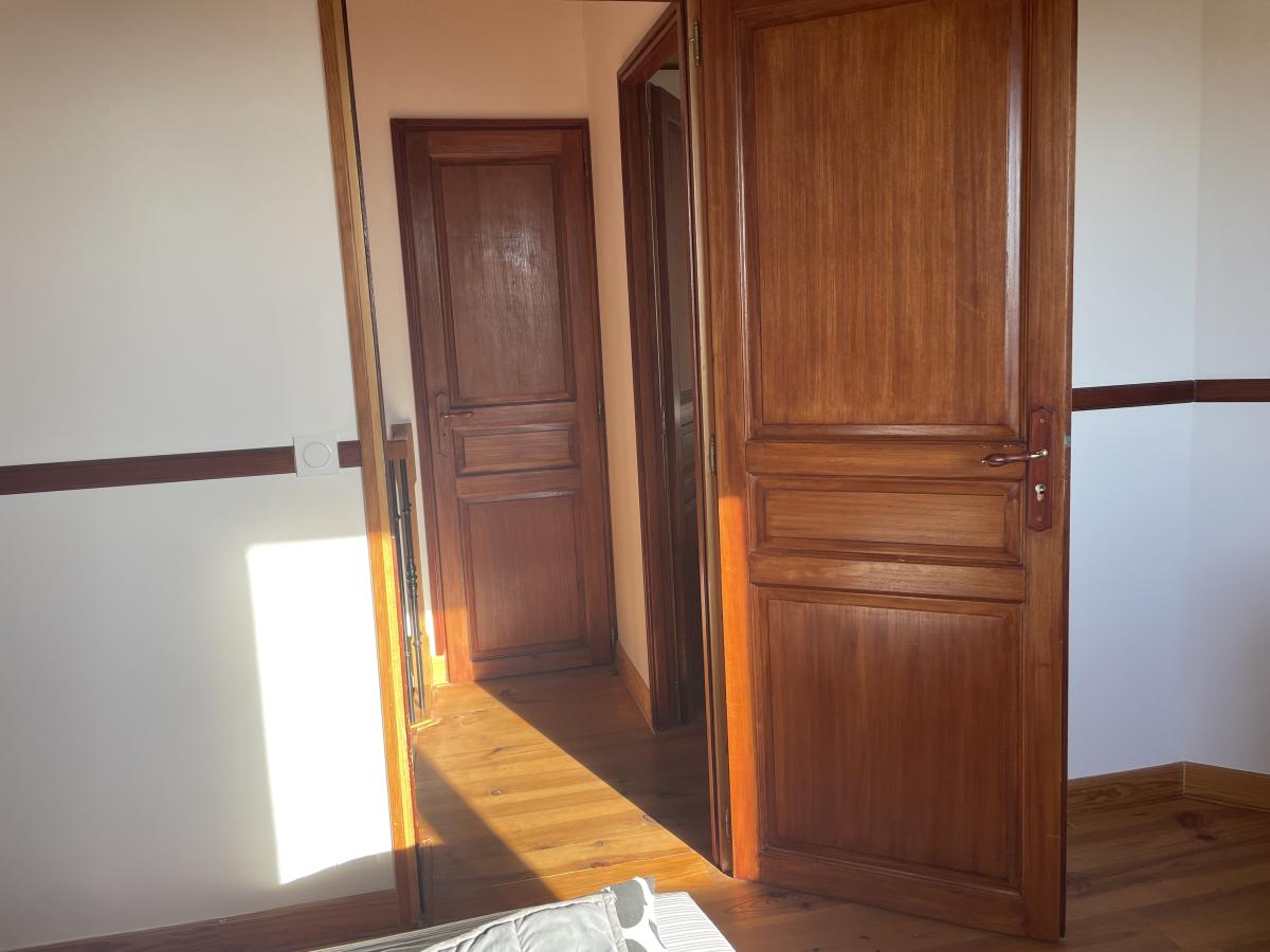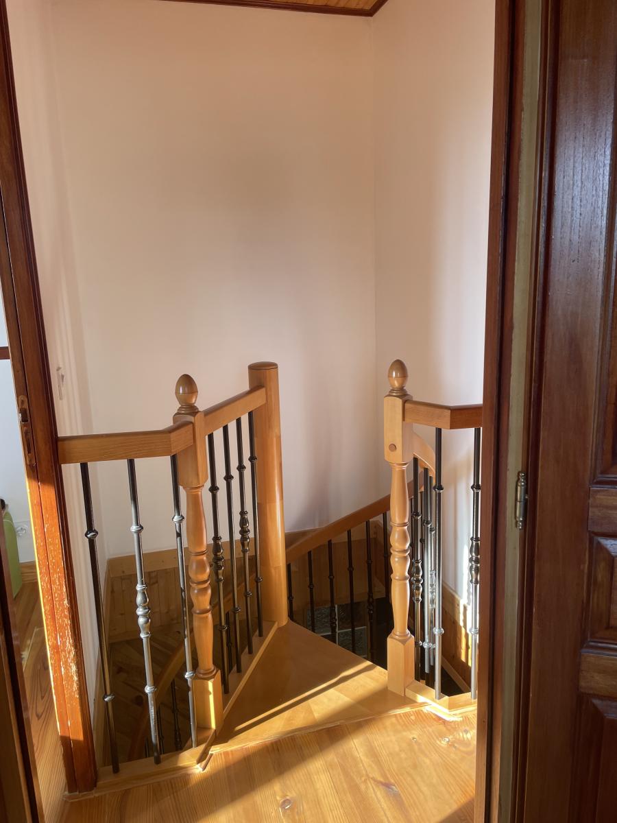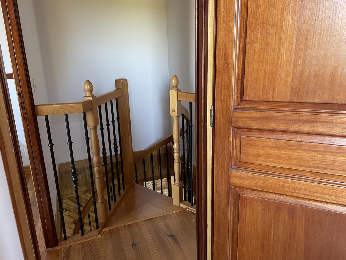 - Au premier étage : escalier bois en colimaçon donnant sur palier desservant une chambre avec petit dressing, une autre chambre, une petite salle d’eau avec WC.