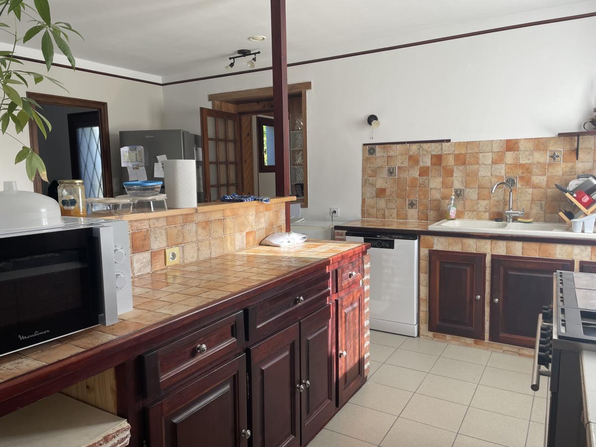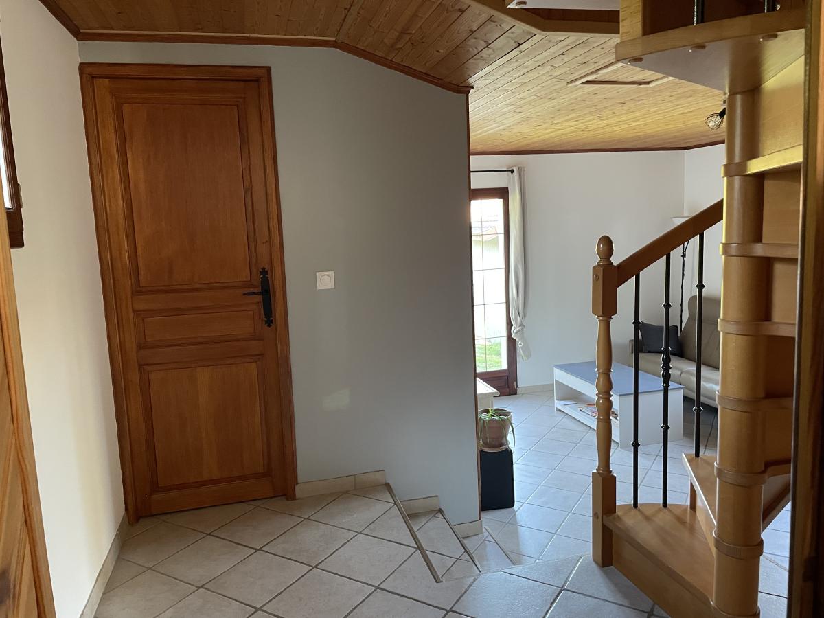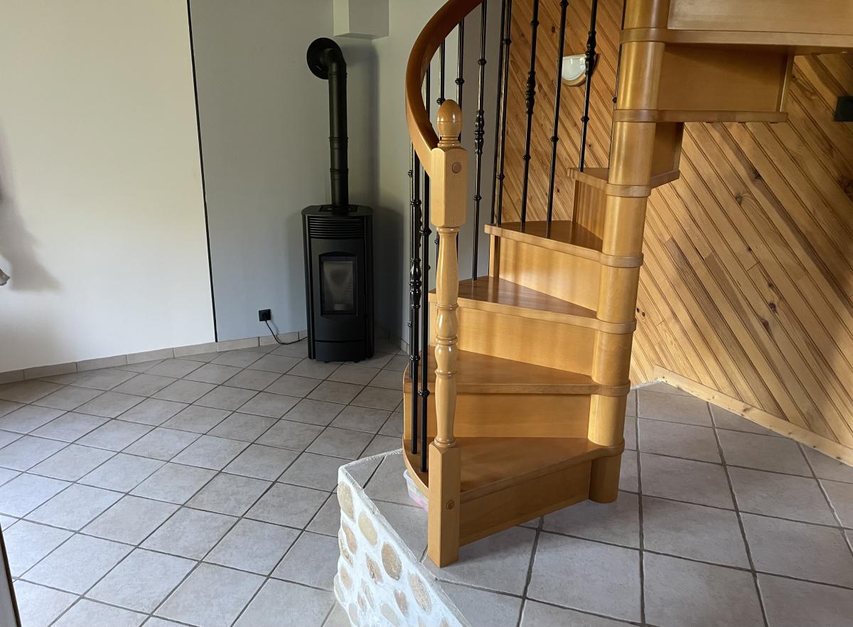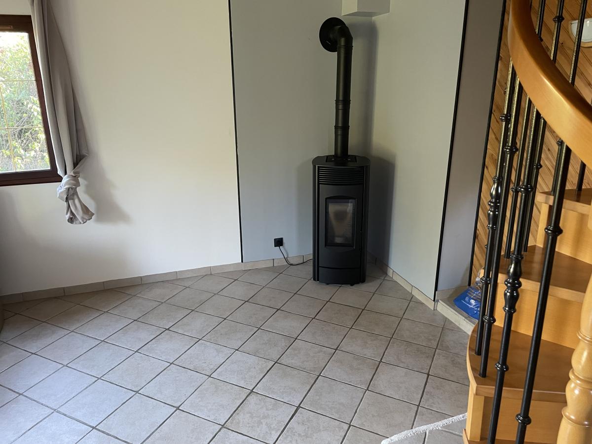 - Au rez de chaussée : entrée dans hall desservant une cuisine équipée, fermée, avec espace salle à manger, un salon en demi-niveau avec poêle à granules, un cellier, une salle de bains et un WC, une chambre avec dressing.