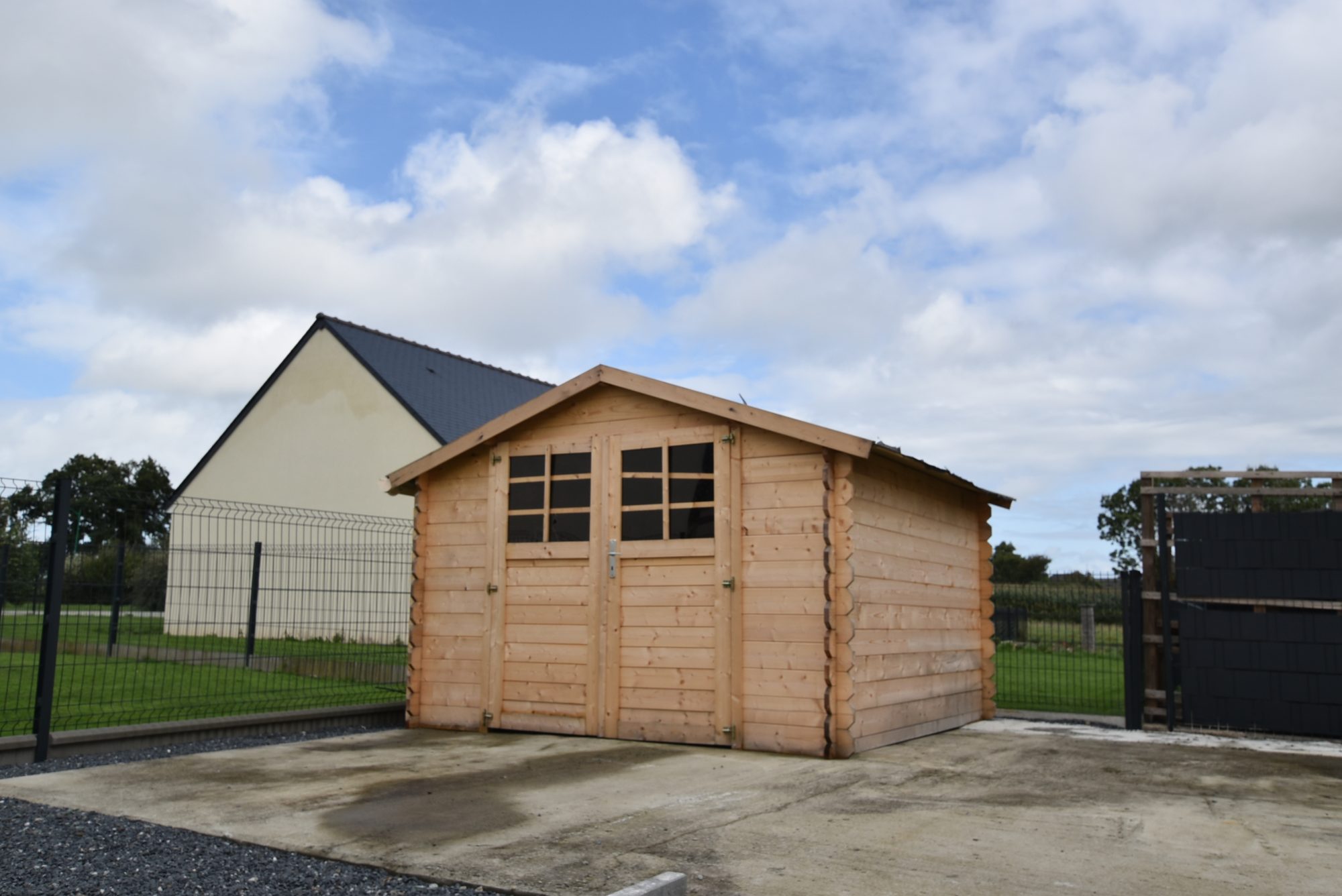 Cour à l'avant et jardin clos avec cabanon à l'arrière.