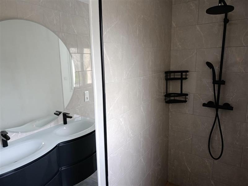 - Au rez-de-chaussée : salle/séjour avec cuisine ouverte aménagée et équipée, chambre parentale avec douche et double vasques, WC, Arrière-cuisine / buanderie.
