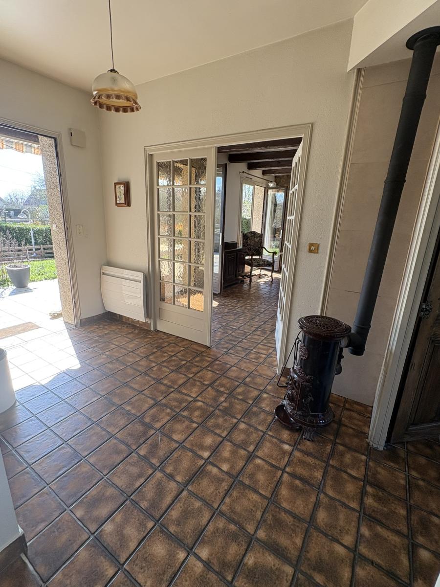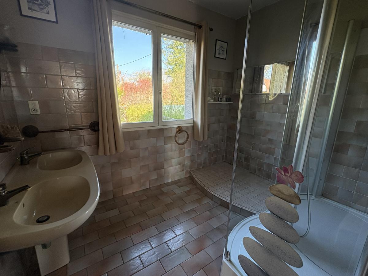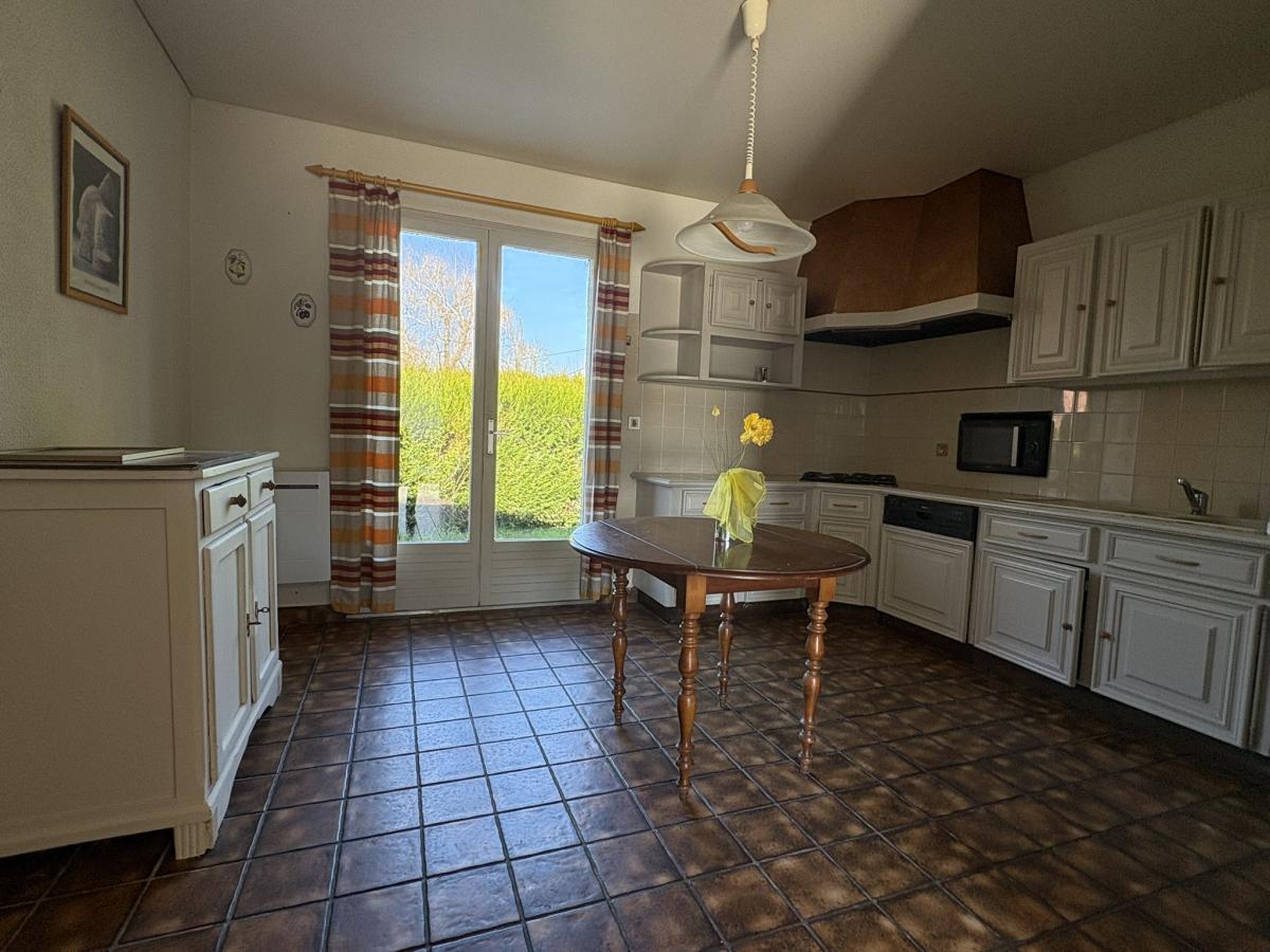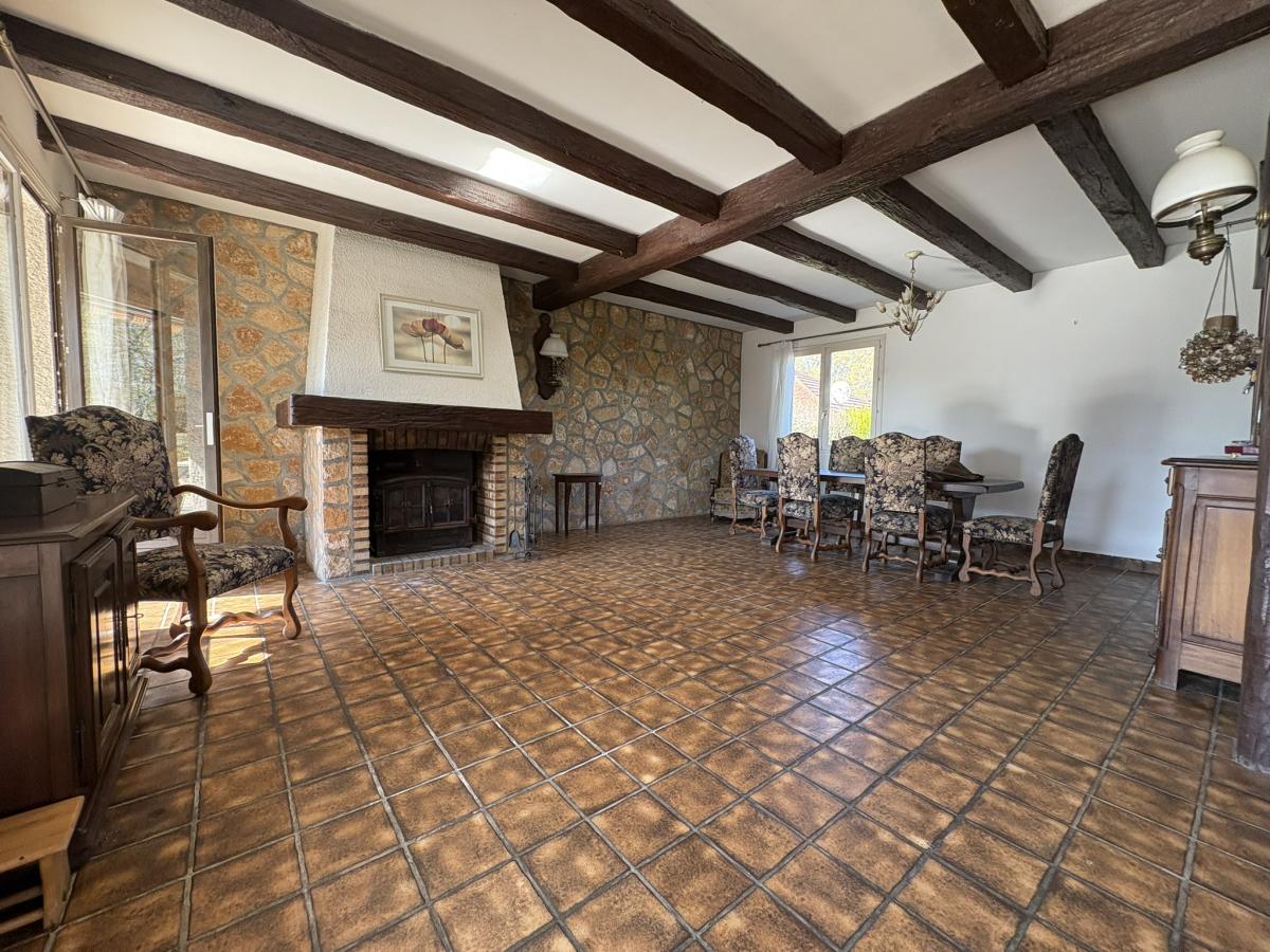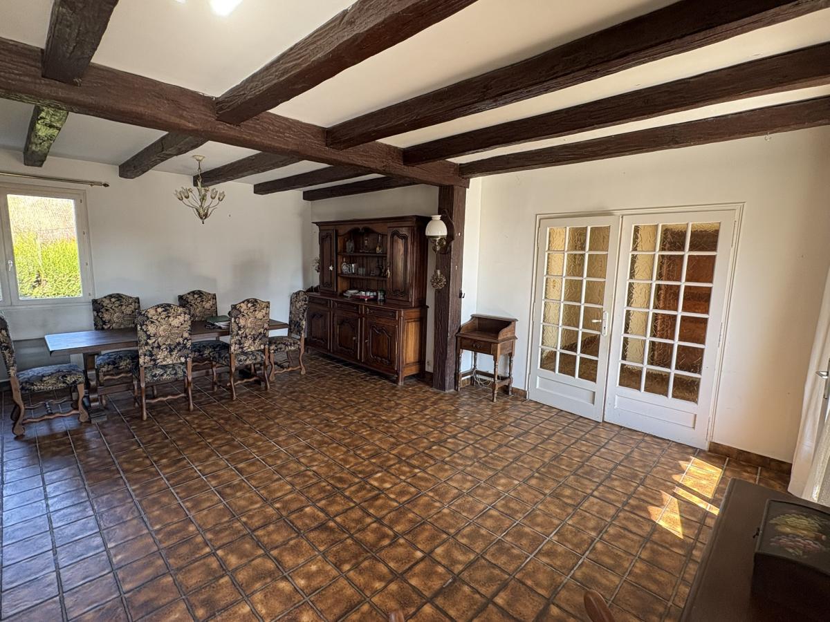 Construction de 1978 comprenant au rez-de-chaussée de plain-pied un hall d'entrée qui dessert une salle à manger une cuisine indépendante qui peut être ouverte sur la pièce de vie, deux chambres, une salle d'eau avec douche , un wc indépendant et un grand placard. Dans le sous-sol complet vous trouverez un garage pour deux voitures en enfilade, une buanderie, une cave, une cabinet de toilettes et deux pièce qui font office de chambres. Grenier non aménageable.