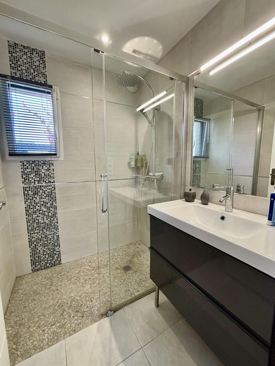 Le bien se compose au rez-de-chaussée d’une entrée avec placard, une cuisine ouverte sur le salon/séjour baigné de lumières demain, accès à une terrasse en bois, composite, un WC, une suite parentale avec dressing et une arrière-cuisine.