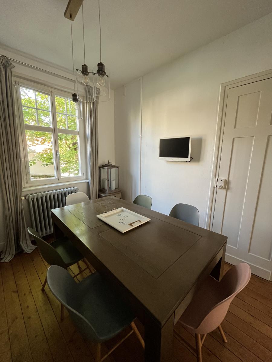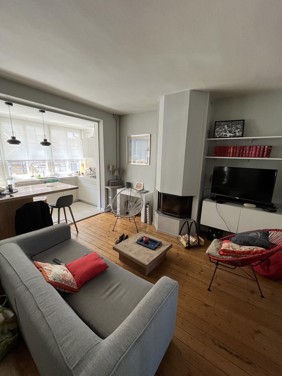 - 1er étage: entrée de 6m², salon et salle à manger de 28m² avec poêle à bois, cuisine ouverte équipée de 9m².