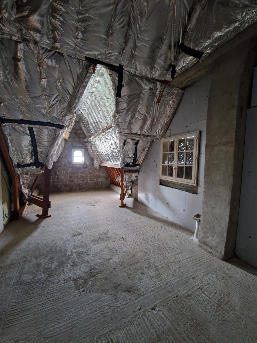 - à l'étage: une chambre, une seconde chambre à finir d'aménager et vaste greniers aménageables et une salle d'eau/wc.
