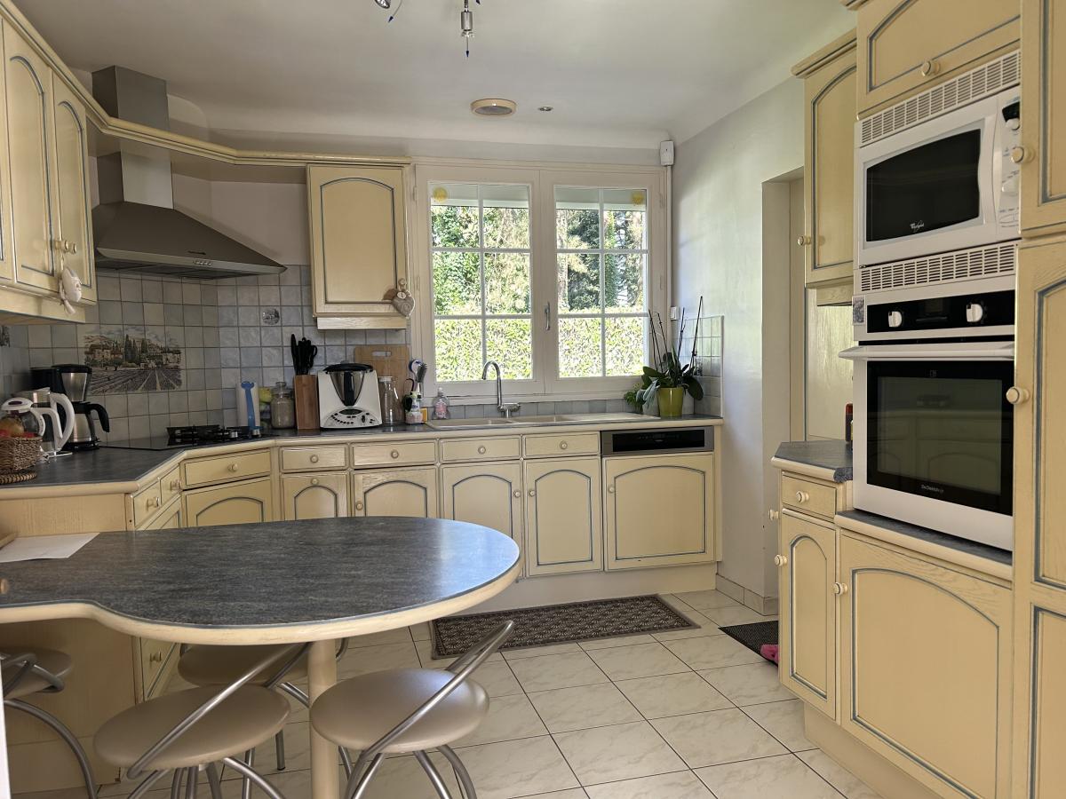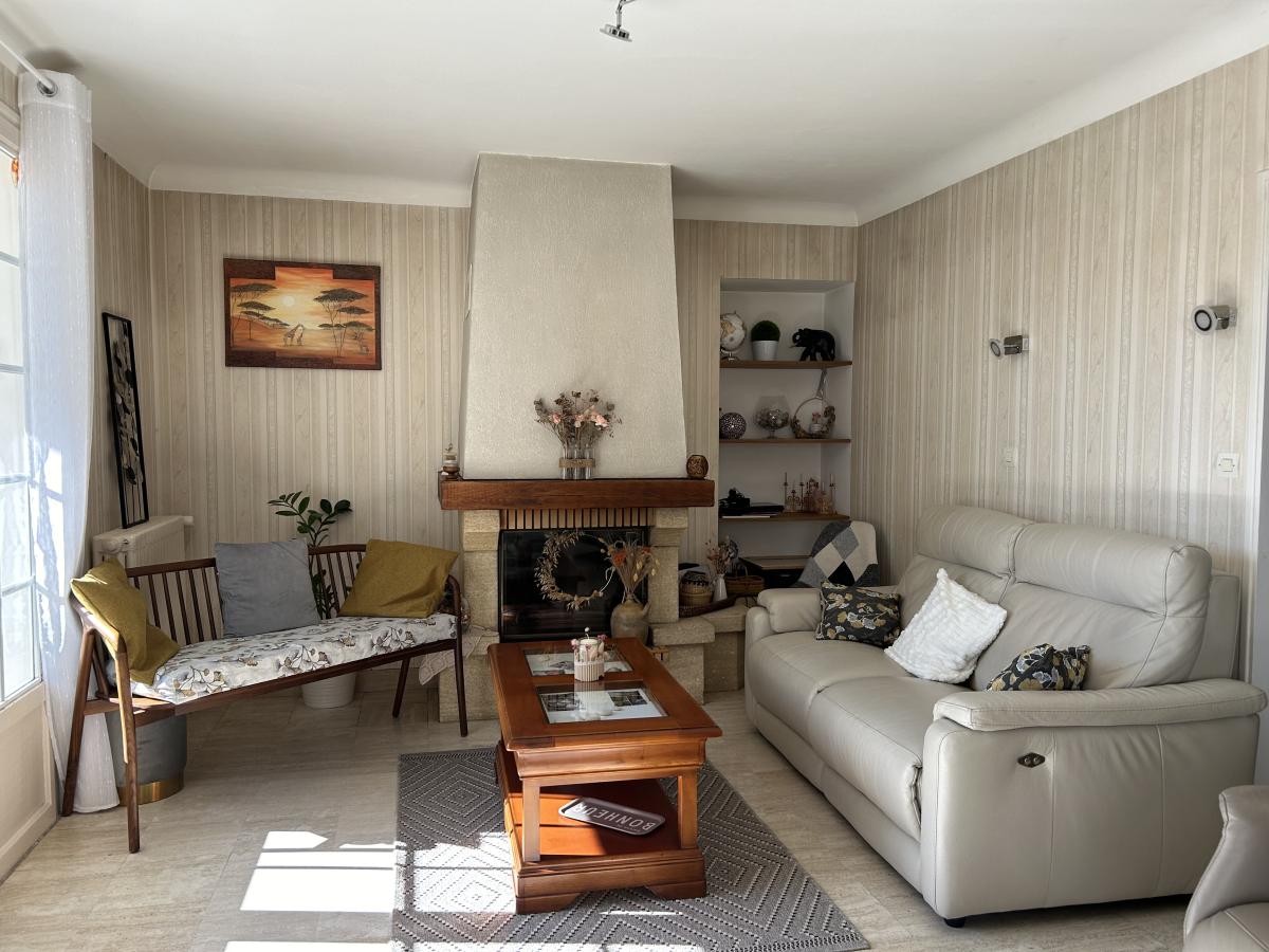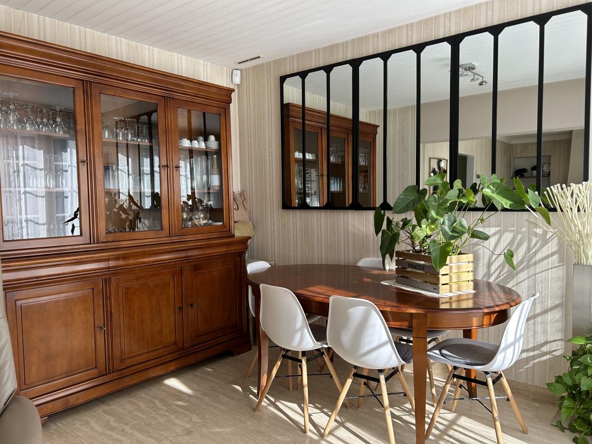 Le rez-de-chaussée se compose d'un salon avec cheminée, accès direct au jardin, une salle à manger ouverte, une cuisine aménagée et équipée. Elle dispose de 4 chambres, dont 2 avec placard intégré, et une qui ouvre sur une petite véranda, une salle de bains équipée d’une douche, ainsi que des wc séparés.