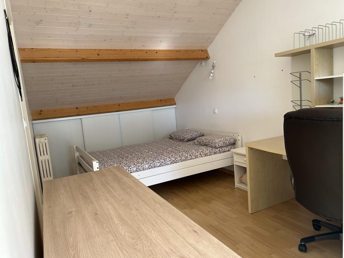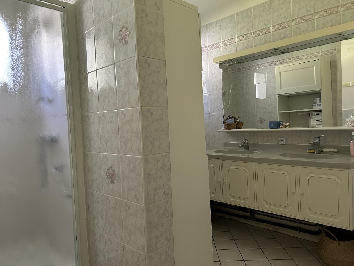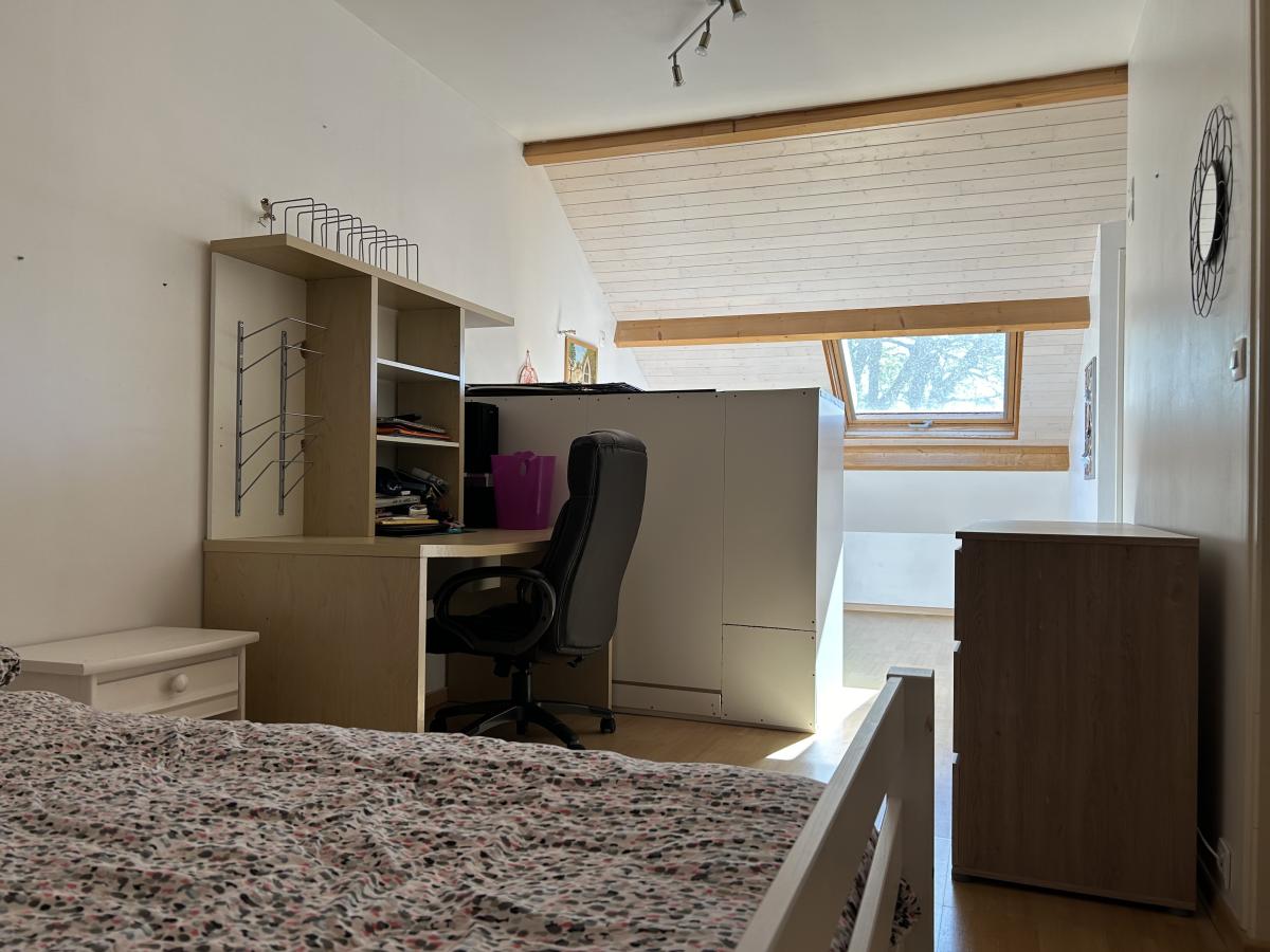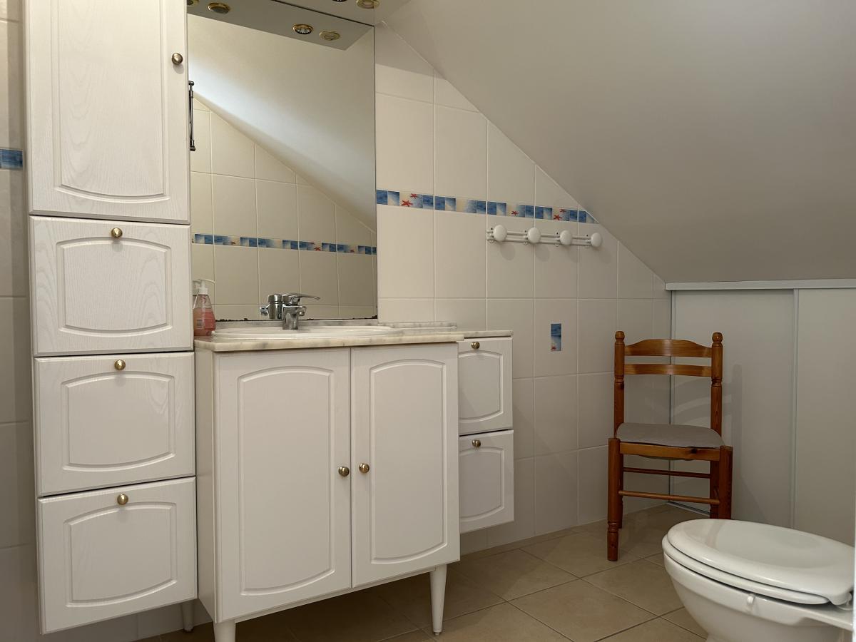 À l’étage, une chambre traversante avec sa salle d'eau privée et ses wc idéale pour un adolescent ou pour des invités.
