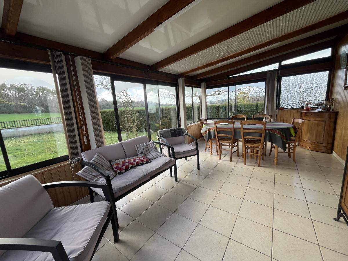 Charmant pavillon habitable de plain pied composé d'une entrée dans véranda, salon avec cheminée, cuisine aménagée et équipée, salle d’eau, 3 chambres.