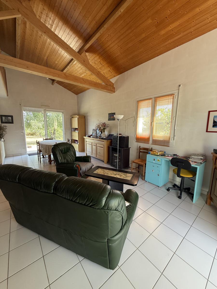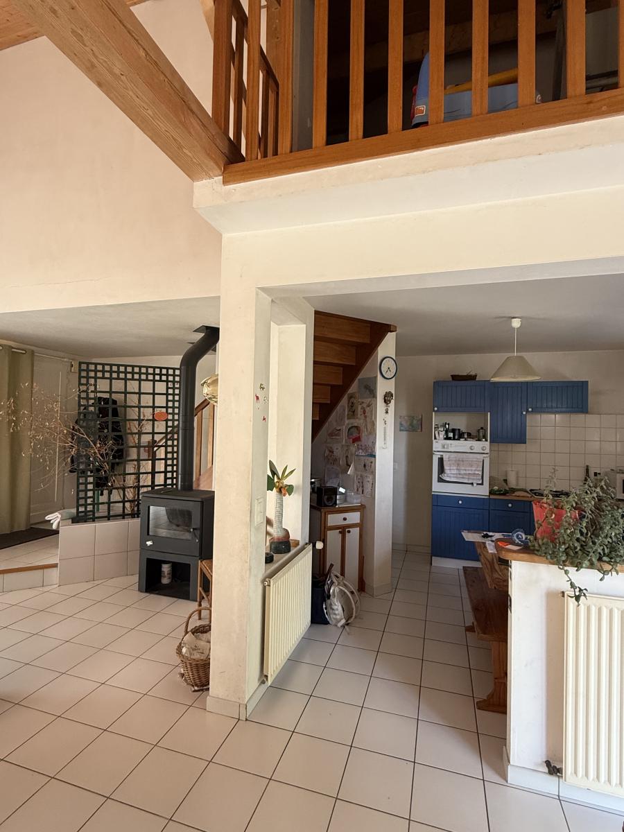 Idéalement située proche du centre-bourg, maison d'une surface habitable de 111m² sur un terrain de 1273 m² sans vis-à-vis composée d'un hall d'entrée, d'un salon séjour avec poêle à bois une cuisine équipée aménagée , une chambre, une salle de bains et un WC. À l'étage une mezzanine, deux chambres avec un point d'eau, un WC et un dressing. Garage.