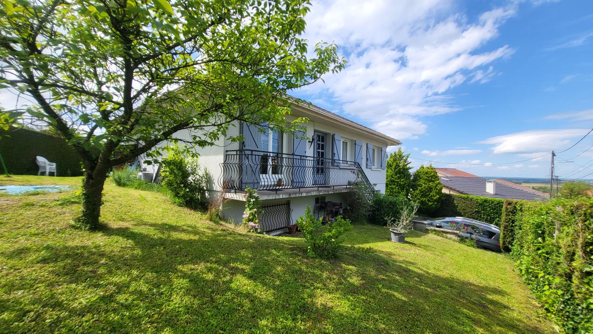 LAGNEY, au cœur de ce charmant village des Côtes de Toul, belle maison individuelle de 115 m² habitables de type pavillon de plain-pied, construction "Pavillon Toulois" 1974 édifié sur sous-sol complet comprenant : En rez-de-jardin, entrée, cuisine équipée avec accès terrasse, salon-séjour avec cheminée et accès jardin, couloir, salle de bains, WC et trois chambres. Au sous-sol, en rez-de-chaussée, couloir, chambre n°4 et salle d'eau avec WC. En annexe, buanderie, cave et garage 1 VL. Vaste terrain arboré sur l'arrière de 2422 m². Quelques travaux de confort à prévoir. Chauffage individuel électrique. Infos et contact : PAR TELEPHONE. Réseau Immobilier Notaires.