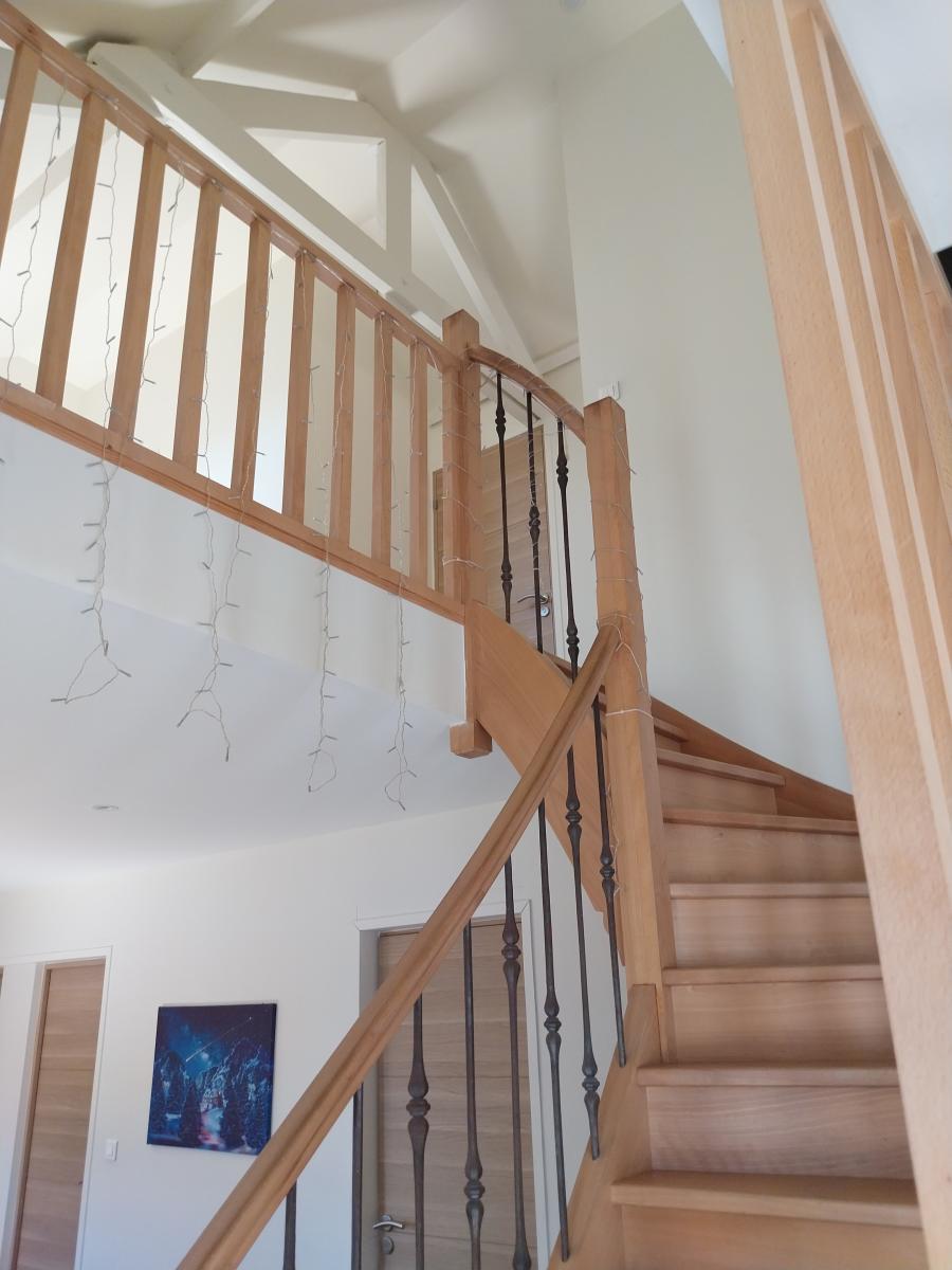 A l'étage :mezzanine, deux chambres ,salle de bains, WC;