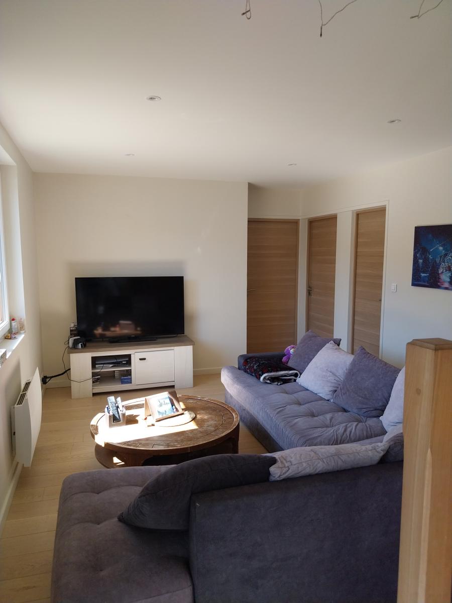 Au RDC: entrée dans le séjour- salon ouvert sur la cuisine équipée ,salle de bains ,WC, deux chambres;