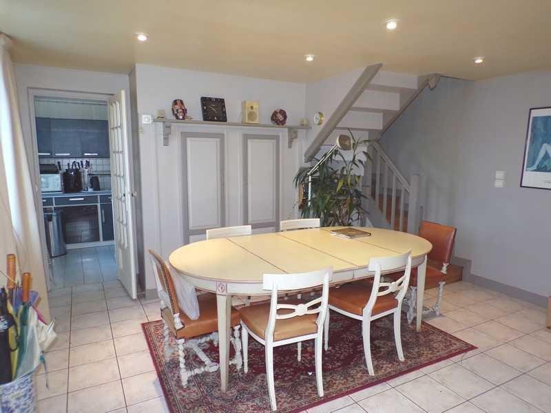 BAISSE DE PRIX - Goderville centre. Maison mitoyenne avec jardin exposition Sud. Belle pièce de vie avec cheminée à foyer ouvert, cuisine aménagée et équipée, wc indépendant au rez de chaussée, l'étage se compose d'une pièce palière à usage de bureau, 1 grande chambre avec rangements, salle de bains avec douche, baignoire et wc. Le 2ème étage vous propose une pièce palière, un dressing et une pièce à usage de chambre. Idéalement placé tous les commerces à pieds. a l'arrière de la maison un espace est à se réapproprier pour du rangement et atelier. Possibilité de stationner des voitures. A saisir. Les informations sur les risques auxquels ce bien est exposé sont disponibles sur le site Géorisques : www. georisques. gouv. fr