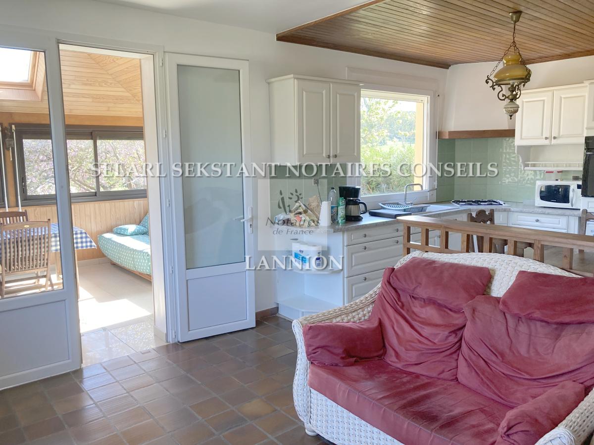 Maison d'habitation située à LANNION - Buhulien(22300), sur sous sol avec garage double, comprenant deux vérandas, séjour salon avec cheminée, cuisine aménagée ouverte, quatre chambres dont deux en rez-de-chaussée;