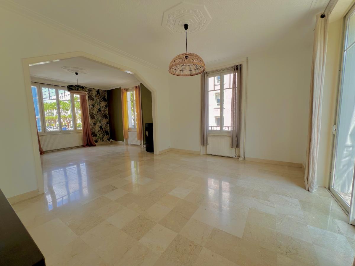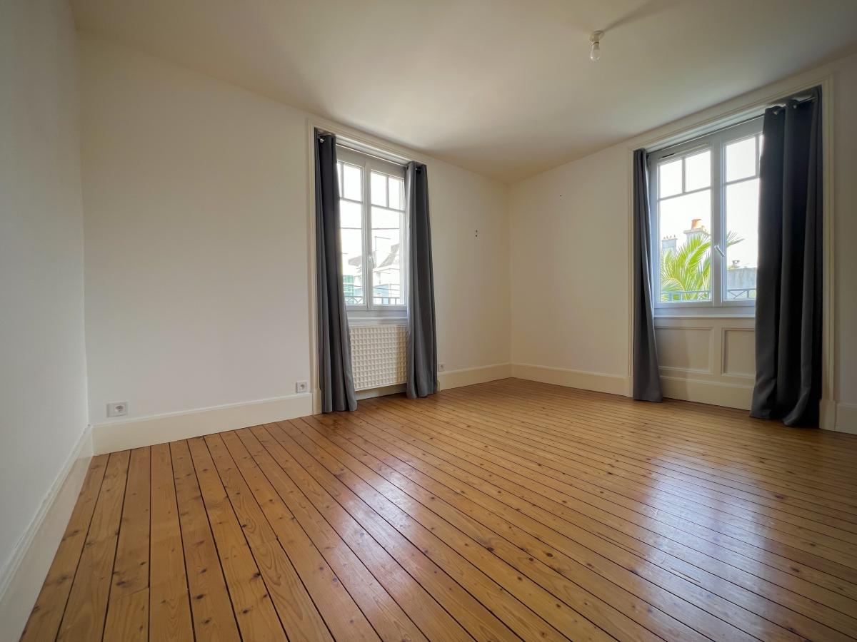 LORIENT, Nouvelle Ville, le centre à pieds ! Jolie maison de caractère entretenue disposant de belles pièces lumineuses. Comp. : bureau SDD, cuisine A+E ouverte sur sal. séj. donnant sur balcon et terrasse, à l'ét., 3 belles ch., SDB, WC. Surface d'env. 160m2 hab.
