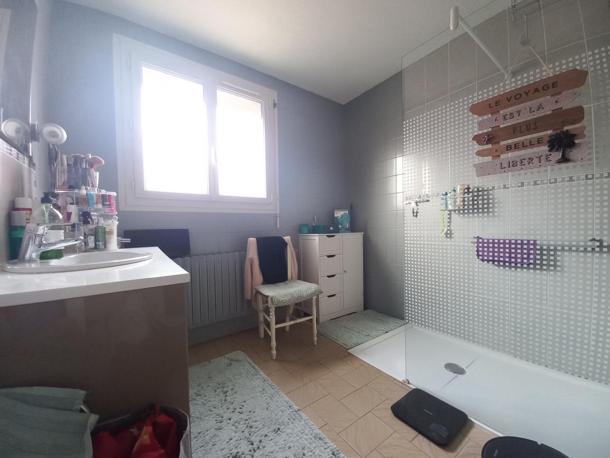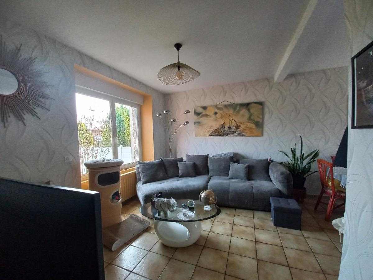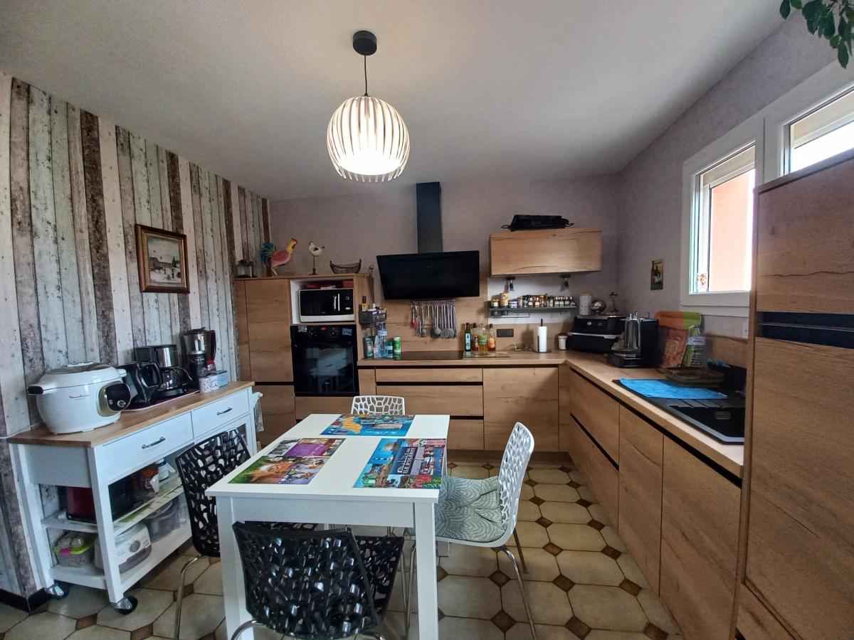 MAISON DE VILLE entièrement rénovée ( PAC, fenêtres pvc, volets roulants motorisés)offrant quatre chambres dont deux en rez de chaussée, deux salle d'eau, séjour lumineux, cuisine aménagée avec accès direct à une terrasse et jardin, sous-sol avec une cave, grand garage. terrain clos.