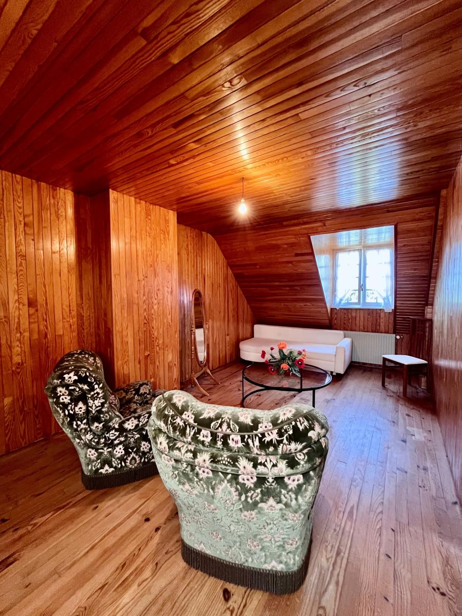 • Etage : couloir desservant deux chambres, salle d’eau, WC et grenier aménageable.