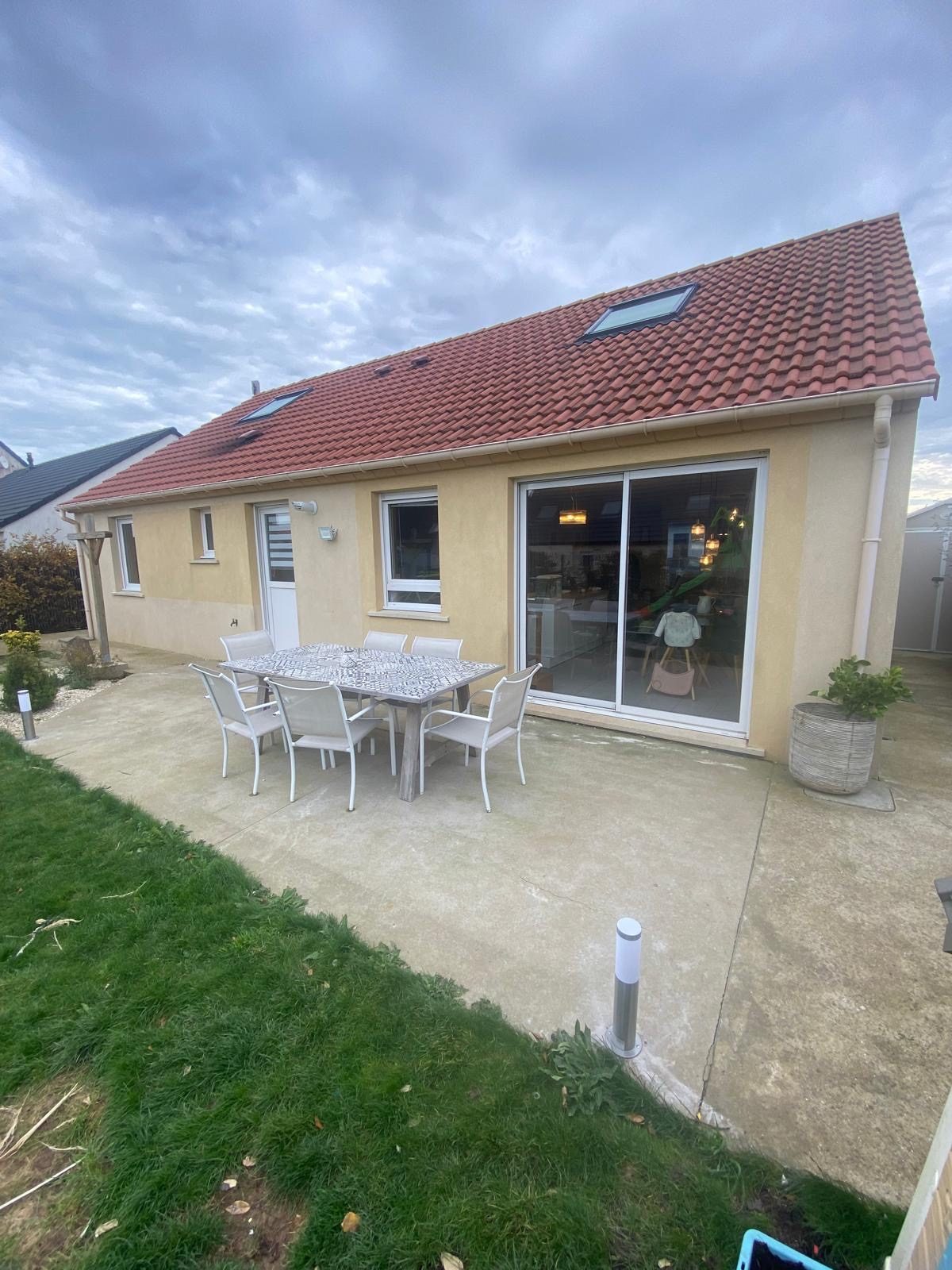 GUINES, MAISON INDIVIDUELLE SEMI PLAIN-PIED de 2019 comprenant au rez-de-chaussée : salon, salle à manger, cuisine ouverte entièrement équipée, couloir, 3 chambres, bureau, salle de bains, cellier, WC. Au 1er étage : palier, 2 chambres. TERRASSE et JARDIN. PARKING devant la maison. PAS DE TRAVAUX A PREVOIR ! Les informations sur les risques auxquels ce bien est exposé sont disponibles sur le site Géorisques : georisques.gouv.fr