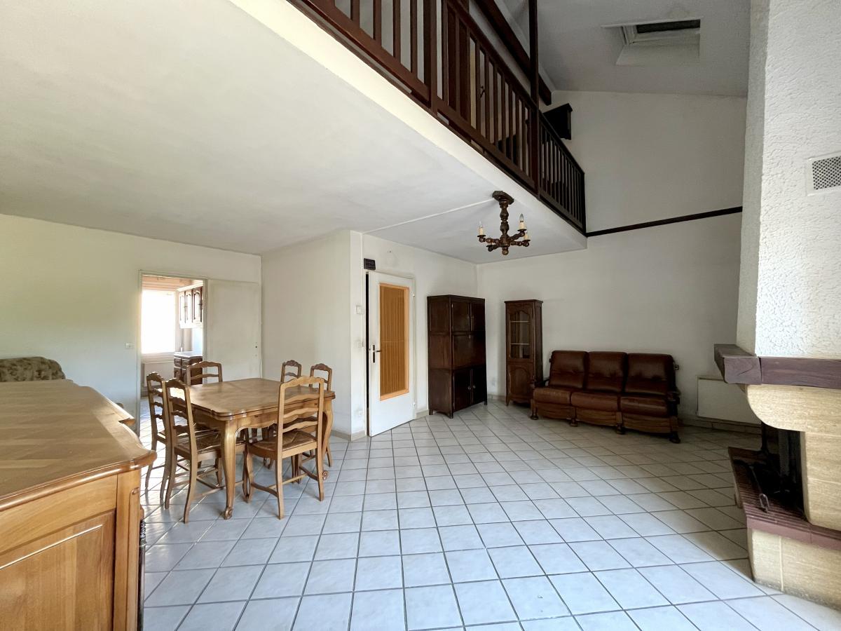 À l’étage, un palier en mezzanine dessert trois chambres, dont une avec salle d’eau, ainsi qu’une pièce pouvant faire office de chambre ouverte sur la mezzanine, une salle de bains et un WC.
