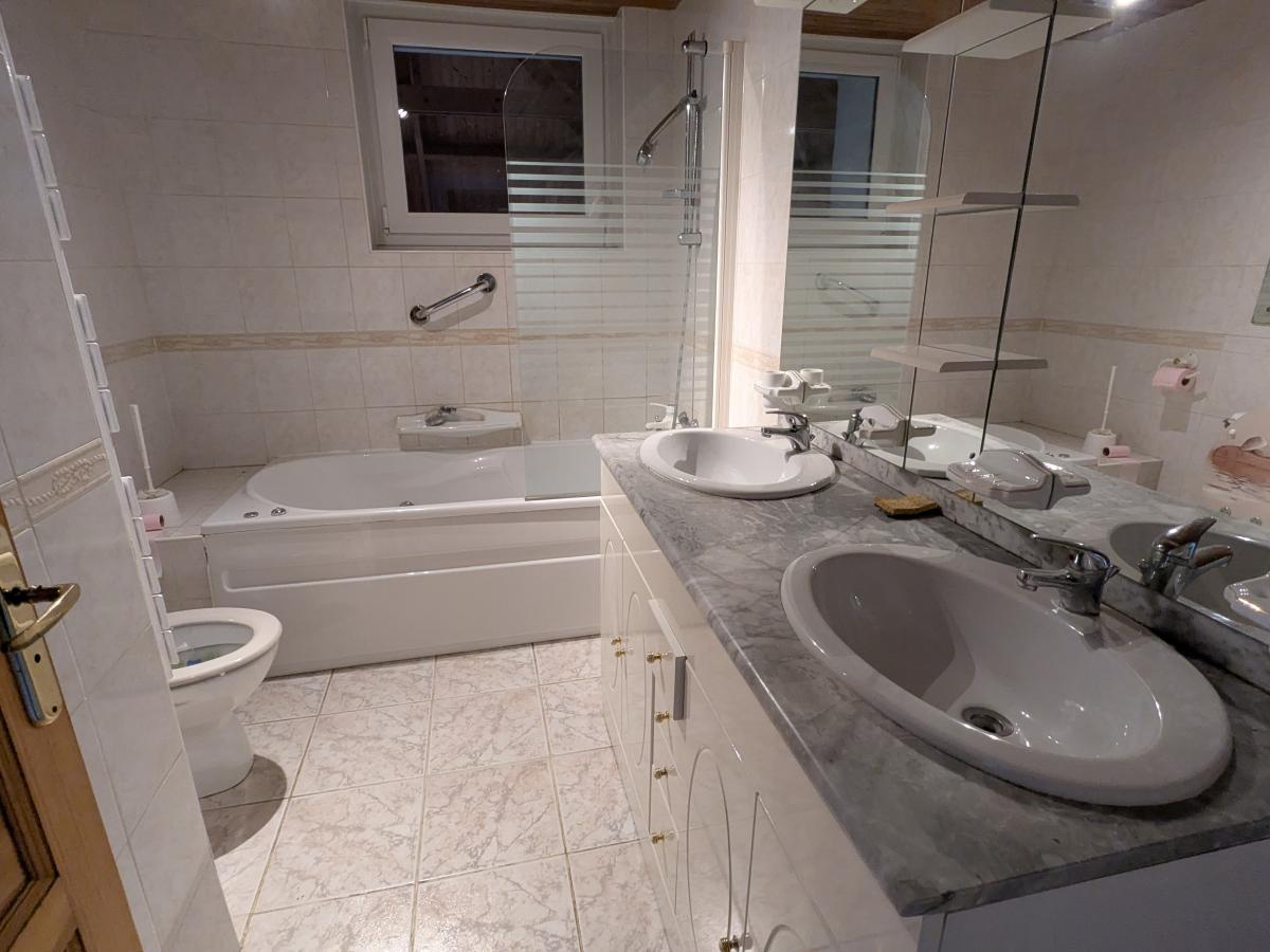 - Au 1er étage : quatre chambres, salle de bains (baignoire, WC, double vasque)