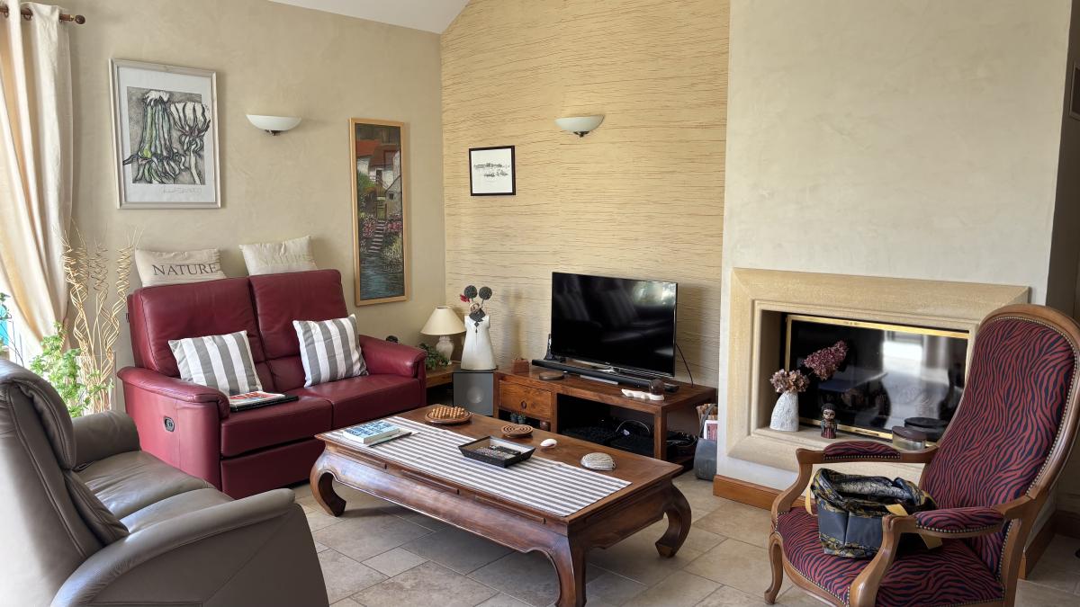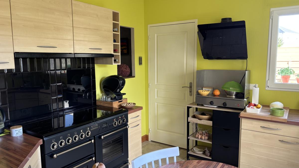 Elle se compose d’une belle pièce de vie lumineuse avec cheminée, salle à manger, salon-séjour, coin bureau et cuisine indépendante équipée avec un piano de cuisson.