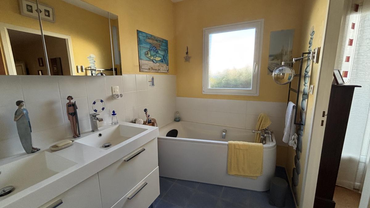 Côté nuit, deux chambres, chacune avec sa salle d’eau privative privative : une suite parentale avec double vasque, baignoire et douche à l’italienne, et une seconde salle d’eau avec vasque, douche à l’italienne et toilettes.
