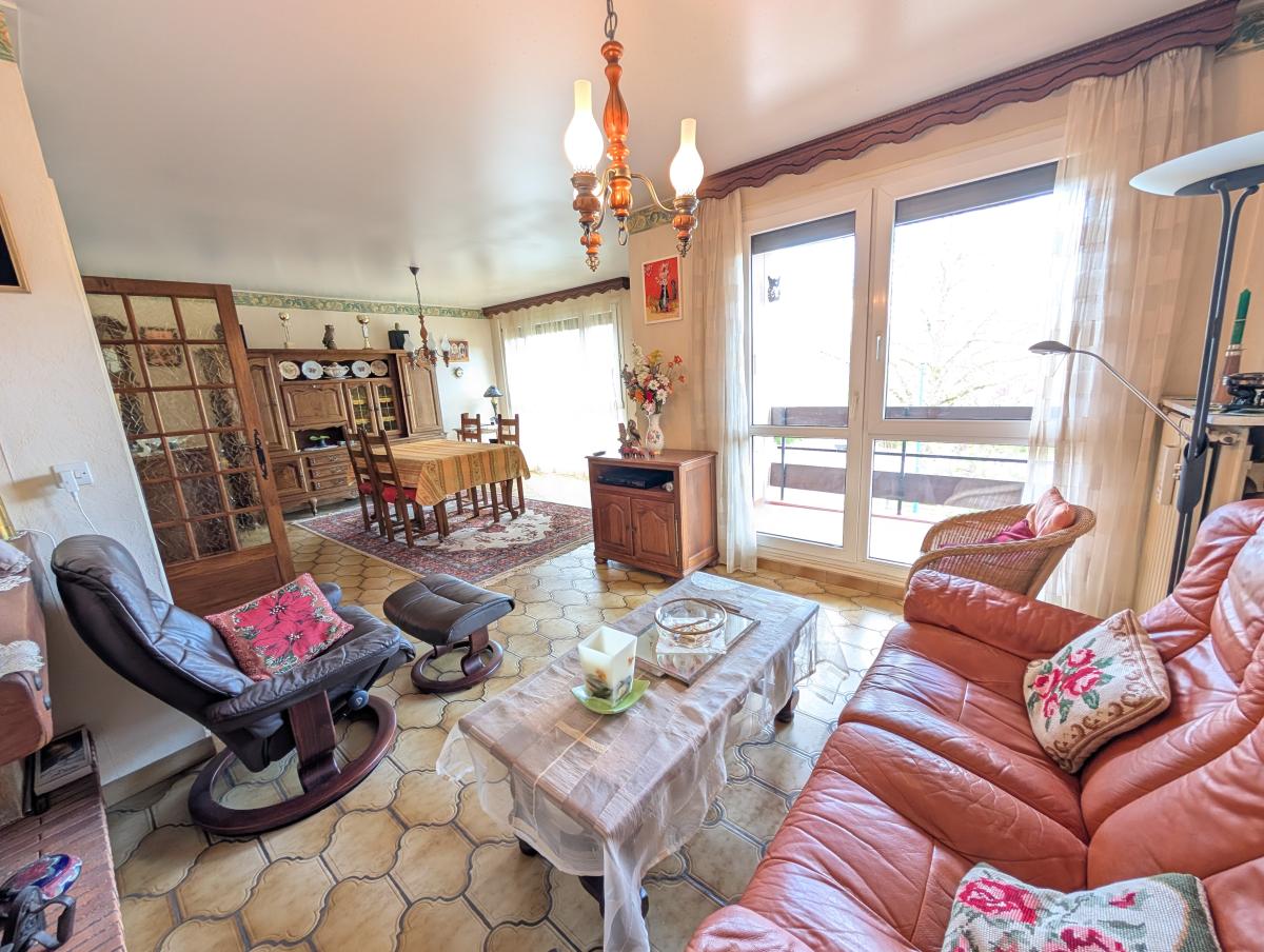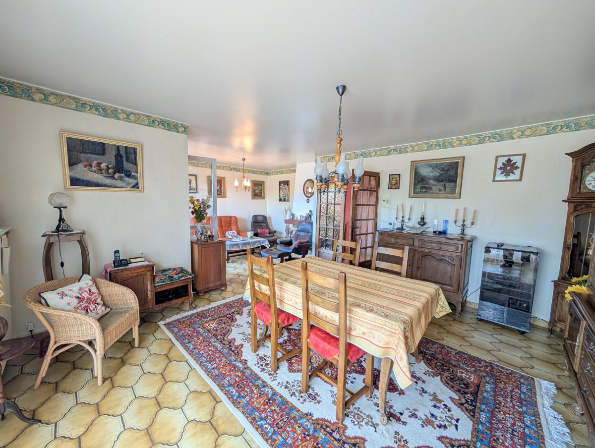 * un salon / séjour lumineux avec salle à manger