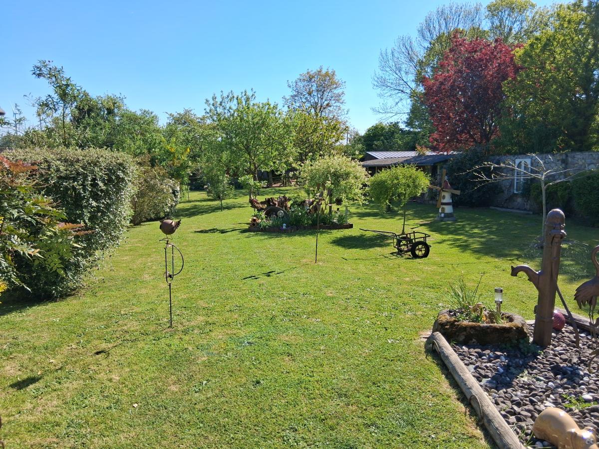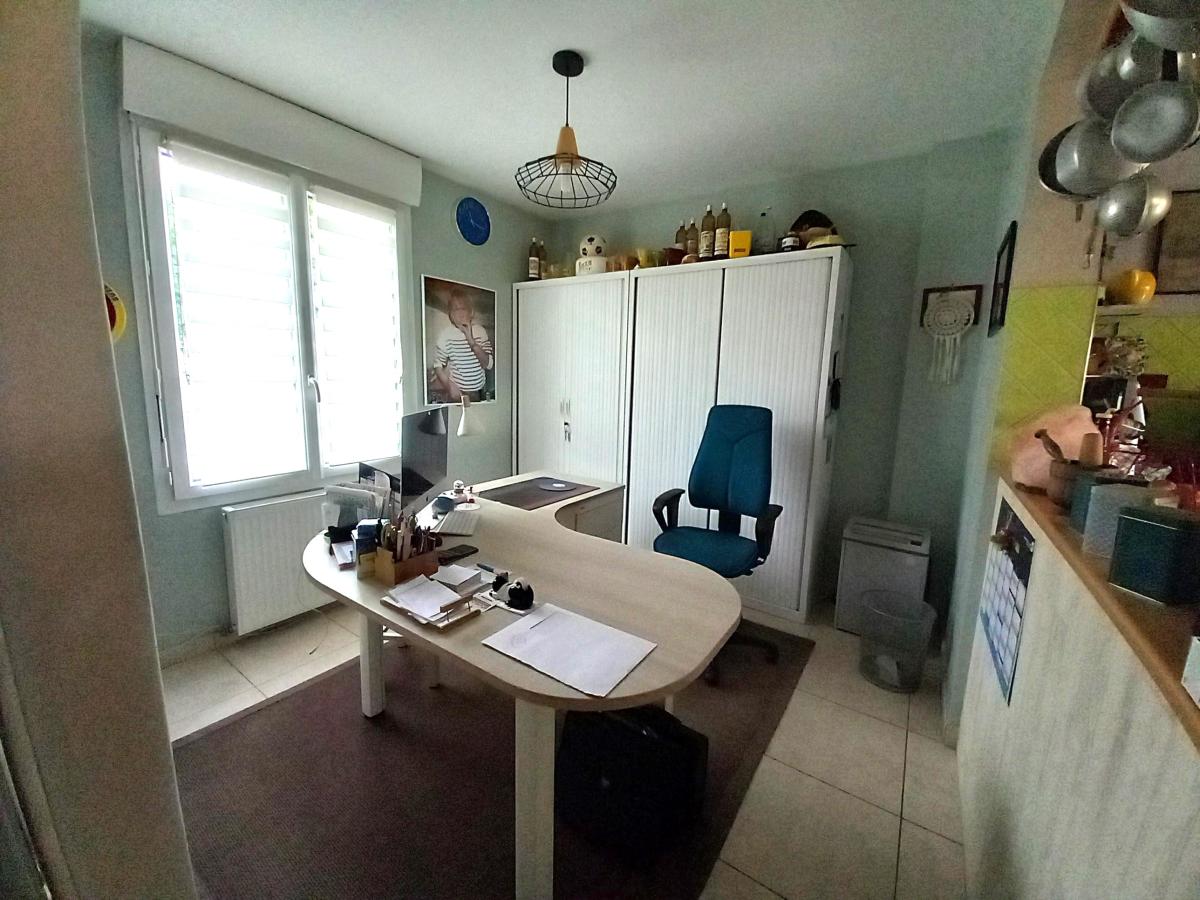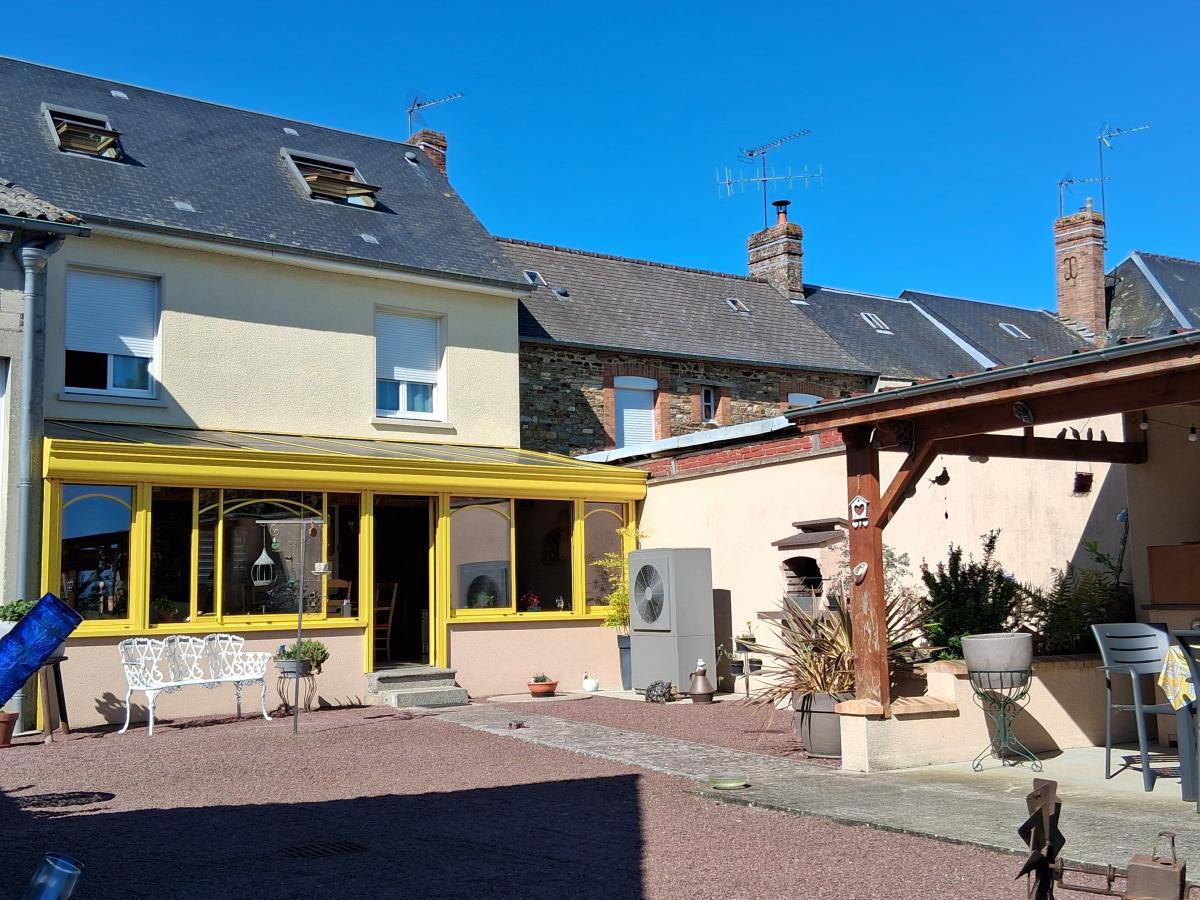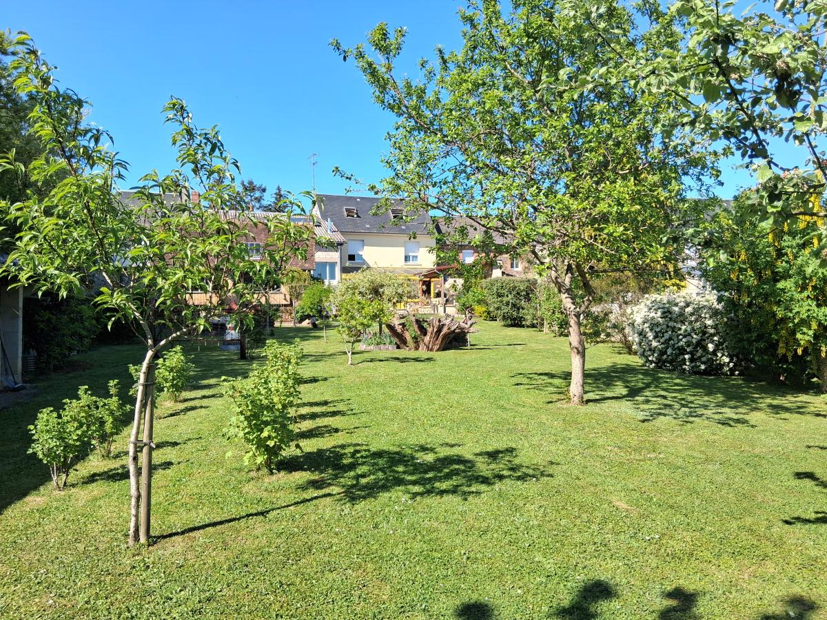 Maison aux pieds des commerces, offrant de belles prestations 120 m² hab, composée au RDC : entrée ouverte sur espace de vie de 70 m² comprenant : cuisine aménagée - salle à manger avec avancée/baies vitrées vue dégagée sur le jardin, (poêle à bois) - Salon et bureau - WC ; Premier étage : deux chambres - dressing - salle d'eau (douche) avec WC ; 2ème étage en comble : Palier et grande chambre (vélux électrique avec volet électrique). Cave. Buanderie. GARAGE et ATELIER jouxtant la maison : 145 m² (hauteur suffisante pour camping-car, camions, tracteurs....) conviendrait à un artisan. Possibilité d'agrandissement du RDC avec le garage. Menuiseries PVC/ALU. Pompe à chaleur (décembre 2018). Chauffe-eau solaire. Toiture côté jardin refaite en 2010). Cour et jardin d'agrément avec puits et pergolas- l'ensemble pour 1026 m².