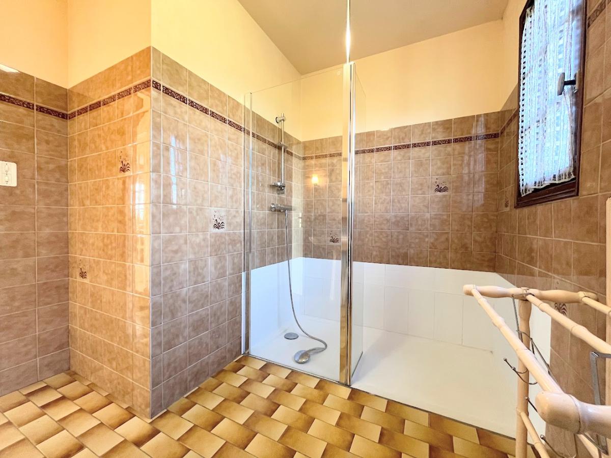 Le rez-de-chaussée se compose d’une entrée, d’une cuisine indépendante, d’une chambre, d’une salle d’eau avec douche italienne, d’un WC, ainsi que d’un salon/séjour traversant, lumineux, agrémenté d’une cheminée insert. Une configuration particulièrement appréciée pour un confort de vie au quotidien ou une évolution douce dans le temps.