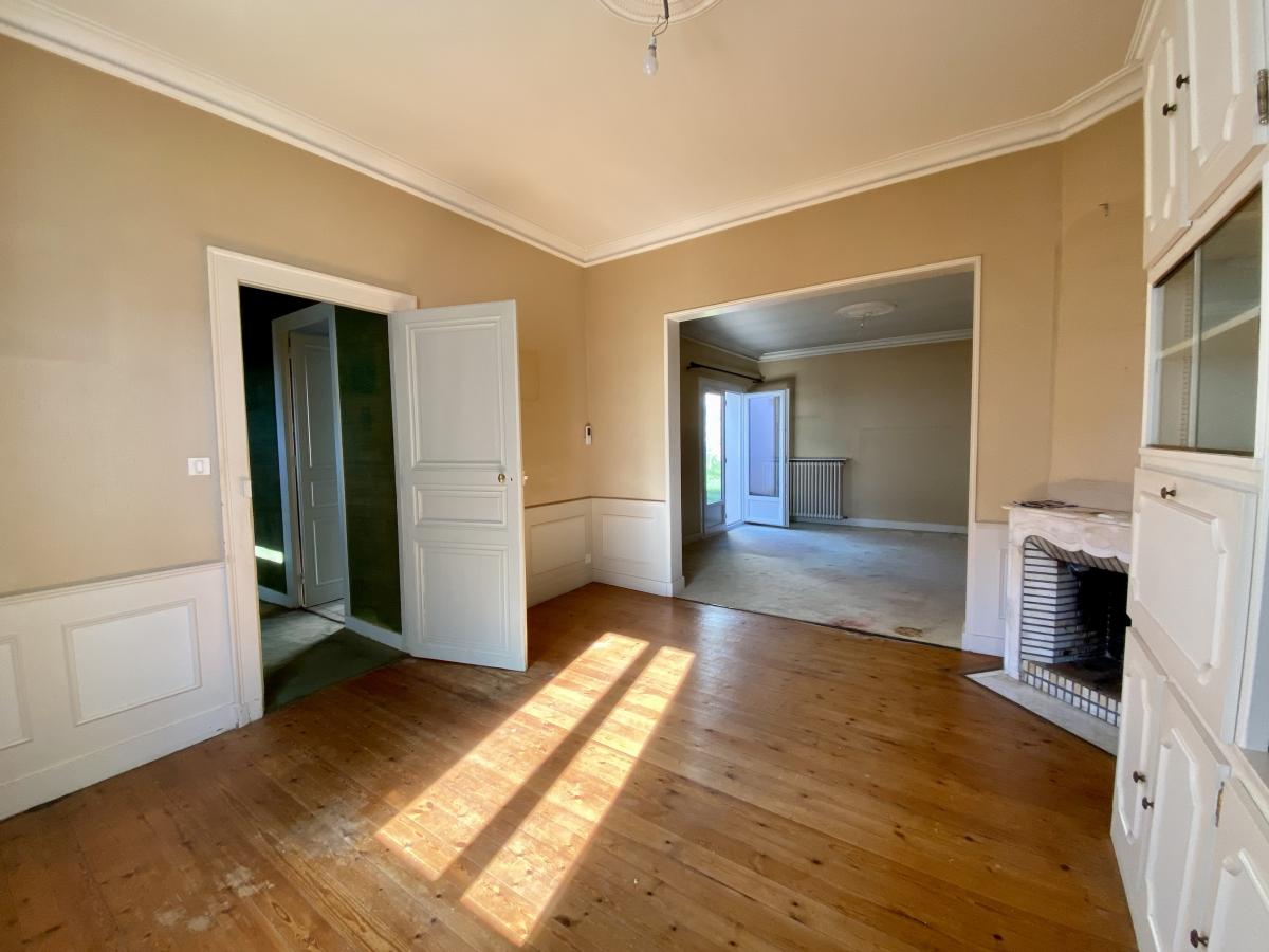 Entrée, WC suspendu, placard sous l’escalier, cuisine donnant sur jardin, salon sur parquet avec cheminée marbre et bibliothèque intégrée, séjour donnant sur jardin (le tout environ 32 m2 expo S/O), suite parentale, chambre avec nombreux placards, vaste salle de bains attenante avec radiateur sèche serviettes et WC,