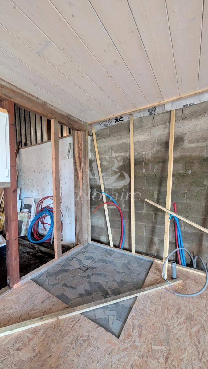 Prestations techniques : chauffage par pompe à chaleur air/eau complété par un poêle à bois, huisseries en double vitrage, assainissement individuel à prévoir (étude de sol déjà réalisée).