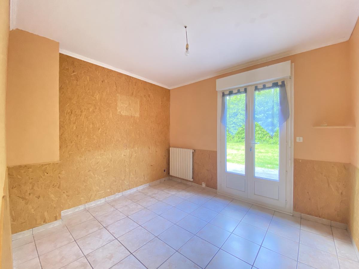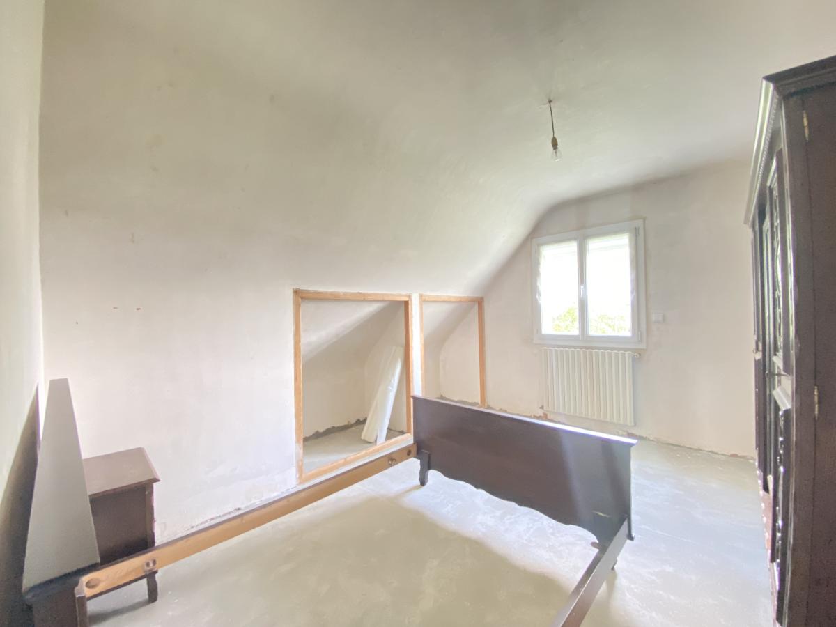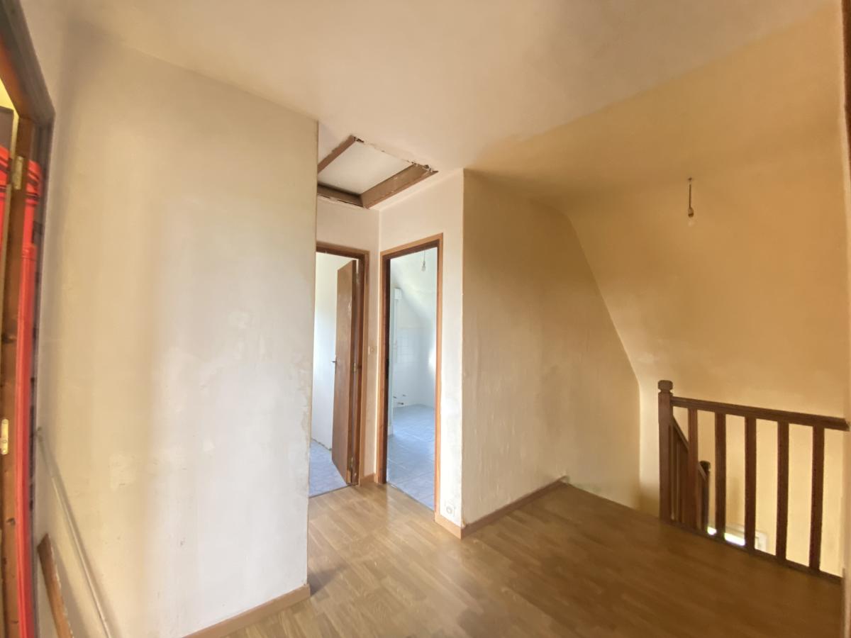 - Rez-de-chaussée : une entrée, une cuisine, un salon/salle à manger avec poêle à bois, WC et une chambre.