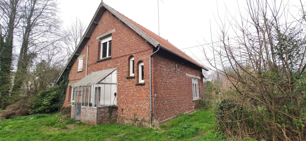 Maison de village individuelle en briques à rénover entièrement offrant env. 120 m² habitables sur un terrain de plus de 2200 m² dont une partie constructible ( CU positif ) offrant :