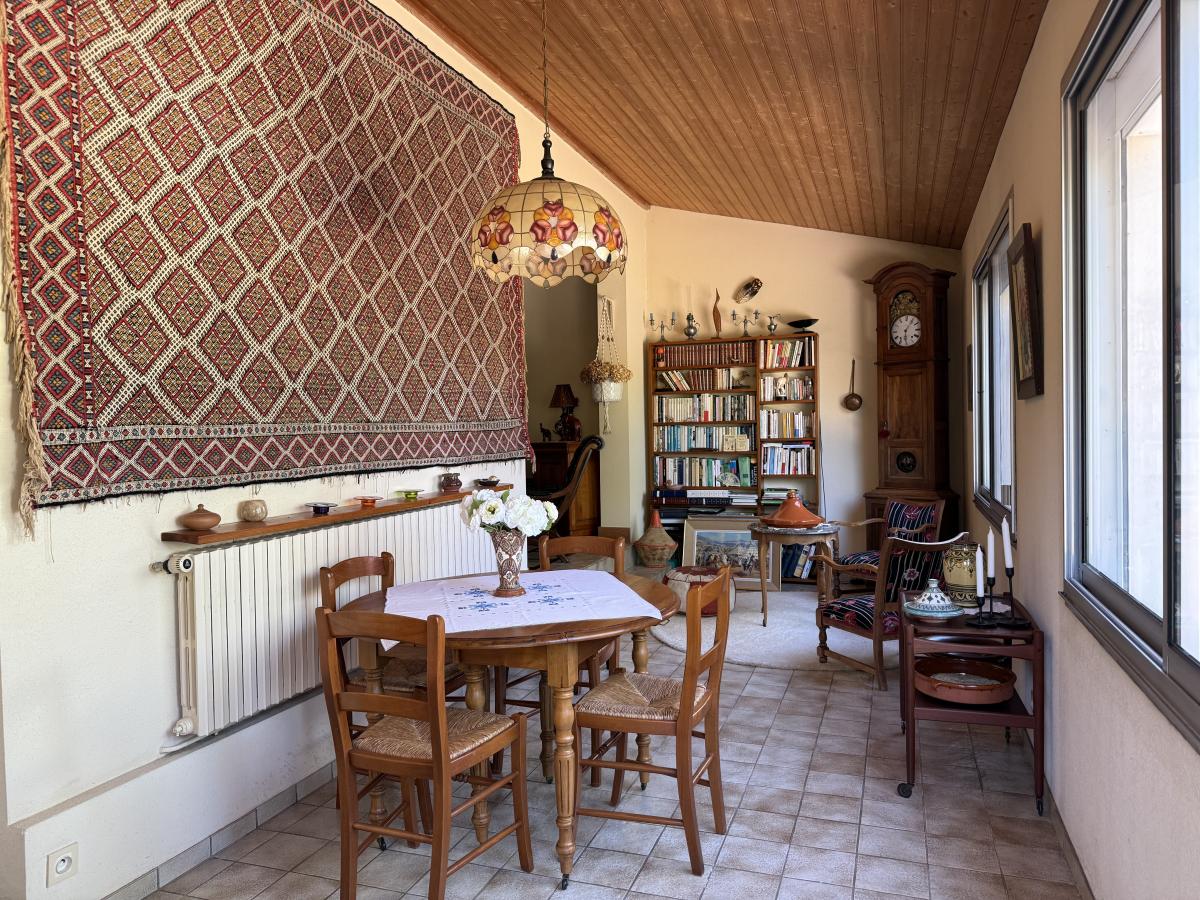 - Réf. 1486 - CHOLET, à proximité de Glisséo et du parc de Moine, maison familiale de 4 chambres et 120 m² habitables. Au rez-de-chaussée, vous trouverez un bel ensemble salon/séjour de 39 m², une cuisine indépendante et son arrière-cuisine à suivre puis un bureau. A l'étage, quatre chambres sur parquet massif et salle-de-bain avec W.C. Grand garage et jardin clos avec petite annexe. Maison en très bon état d'entretien. 195.000 € + frais de négociation 9.360 € TTC (soit 4,8 % TTC du prix net vendeur, à la charge de l'acquéreur). Logement éligible à la nouvelle réglementation du DPE : CLASSE ENERGIE D (198 kWh/m²/an) - GES D (42 kg CO²/m²/an).