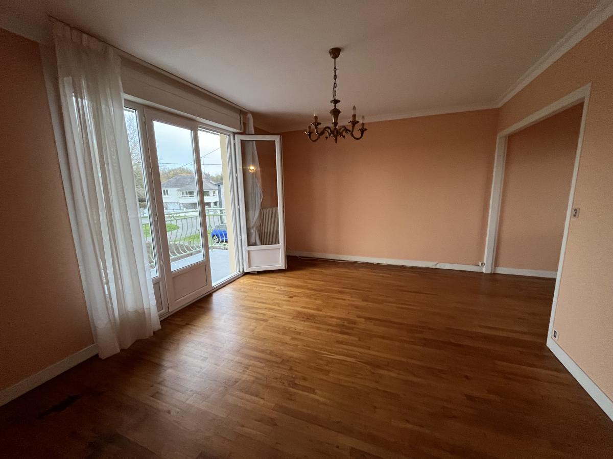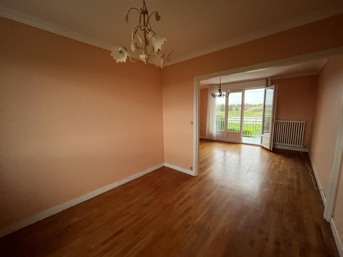 • Rez-de-chaussée surélevé : hall d’entrée donnant sur le salon-salle à manger donnant sur le balcon, cuisine aménagée, deux chambres avec placards, salle d’eau, WC, buanderie et cave.