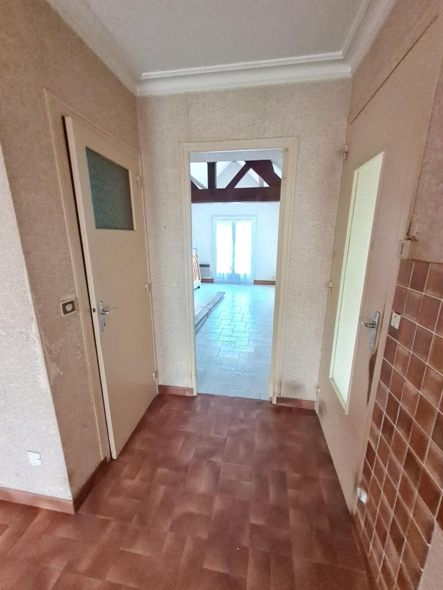 - au rdc: couloir, pièce à usage de chaufferie, chambre, wc, cuisine aménagée et équipée ( meubles heuts et bas, évier 2 bacs, hotte), véranda, salle de douche, salon, salle-à-manger avec cheminée insert,