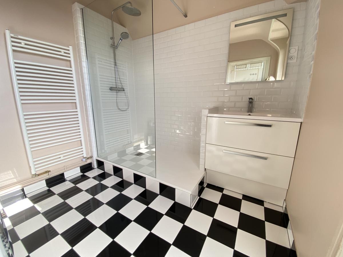 Elle est composée au rez-de-chaussée d'une cuisine ouverte aménagée ouverte sur un séjour salon lumineux et chaleureux, une chambre et une salle d'eau avec WC.
