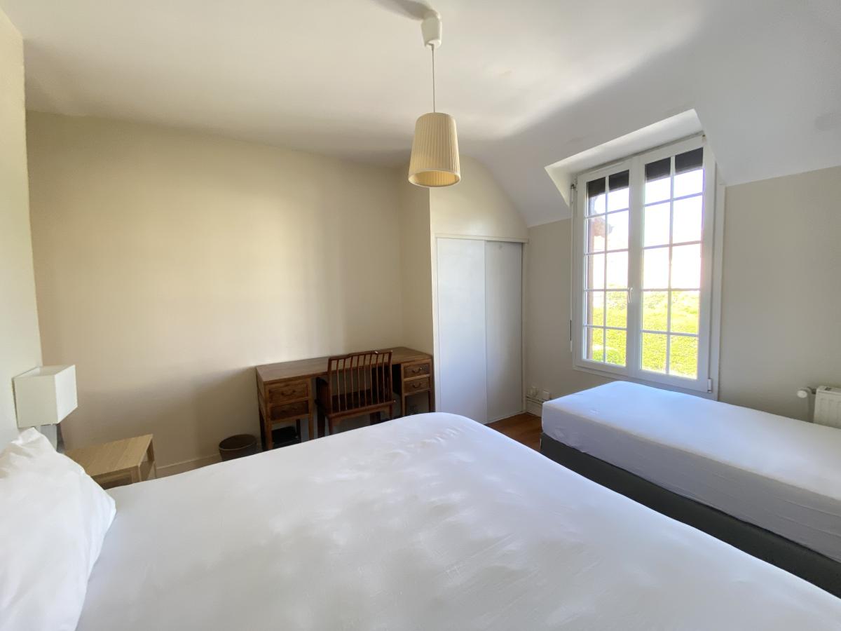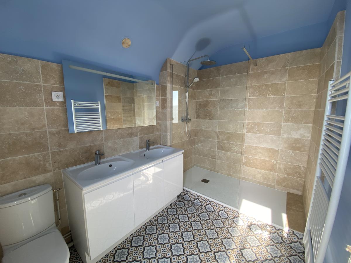 Au premier étage : un couloir distribue trois chambres avec parquet et deux salles d'eau avec WC.