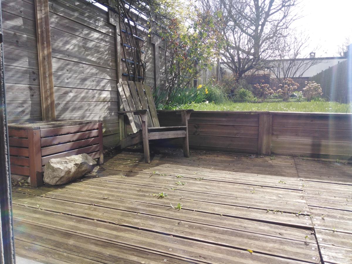 Extérieur : Terrasse, jardin clos, chalet de jardin ;