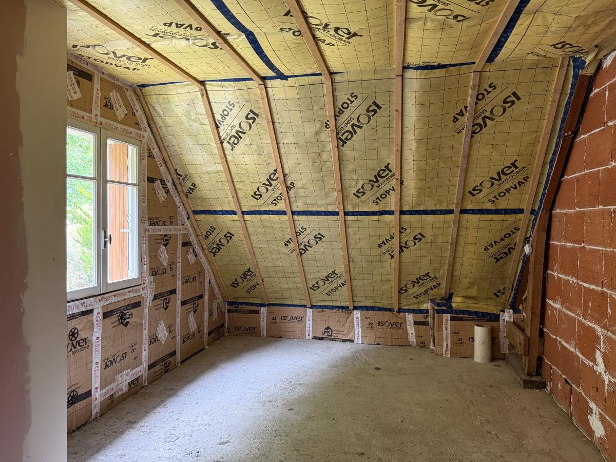 Belle néo-bretonne sur terrain d'environ 1400 m2 de terrain (géomètre à prévoir), élevée sur sous-sol (ancienne cuisine et cheminée, chaufferie, pièce supplémentaire et garage) et comprenant en rez de chaussée surélevé, grande cuisine meublée (placards, hotte, évier), salon cheminée, deux chambres, wc, salle de bains, placard ; étage sur dalle de deux chambres, salle d'eau et wc, grenier.