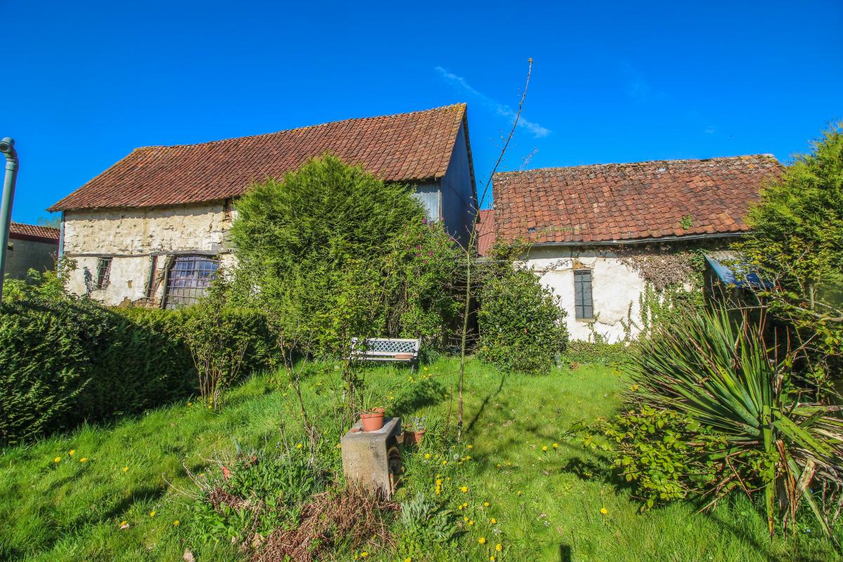 Une dépendance en état et un jardin.