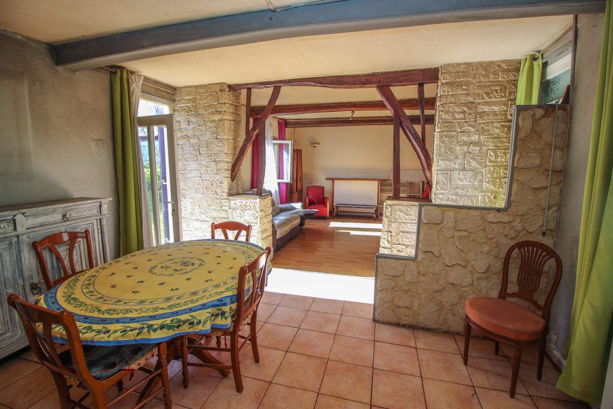 L'office notarial vous propose en exclusivité une charmante longère restaurée, comprenant une cuisine, un salon-séjour, une chambre, une salle d’eau et un sanitaire,