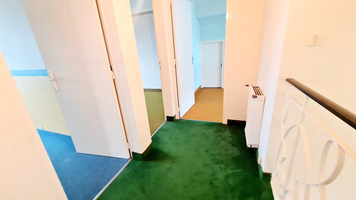 Le premier étage offre un dégagement avec 3 chambres respectivement d'environ 10,25 m², 11.80 m² et de 12.50m², une salle d'eau avec WC d'environ 5 m² et en enfilade un bureau dans le prolongement pour environ 12 m².