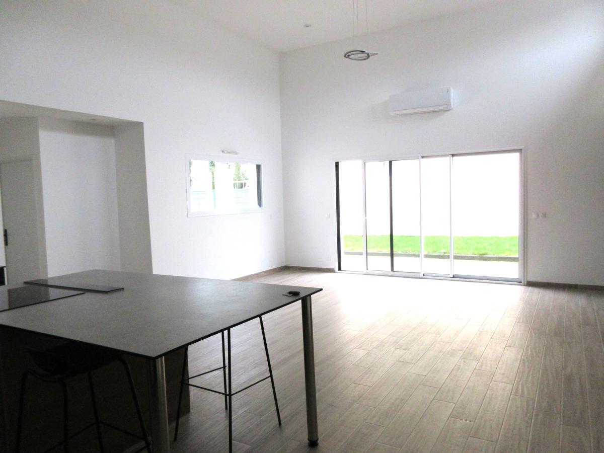 Une pièce de vie de plus de 50m² baignée par le soleil et ouvrant sur la terrasse distribue d'un côté la suite parentale (chambre, dressing et salle de douche à l'italienne)