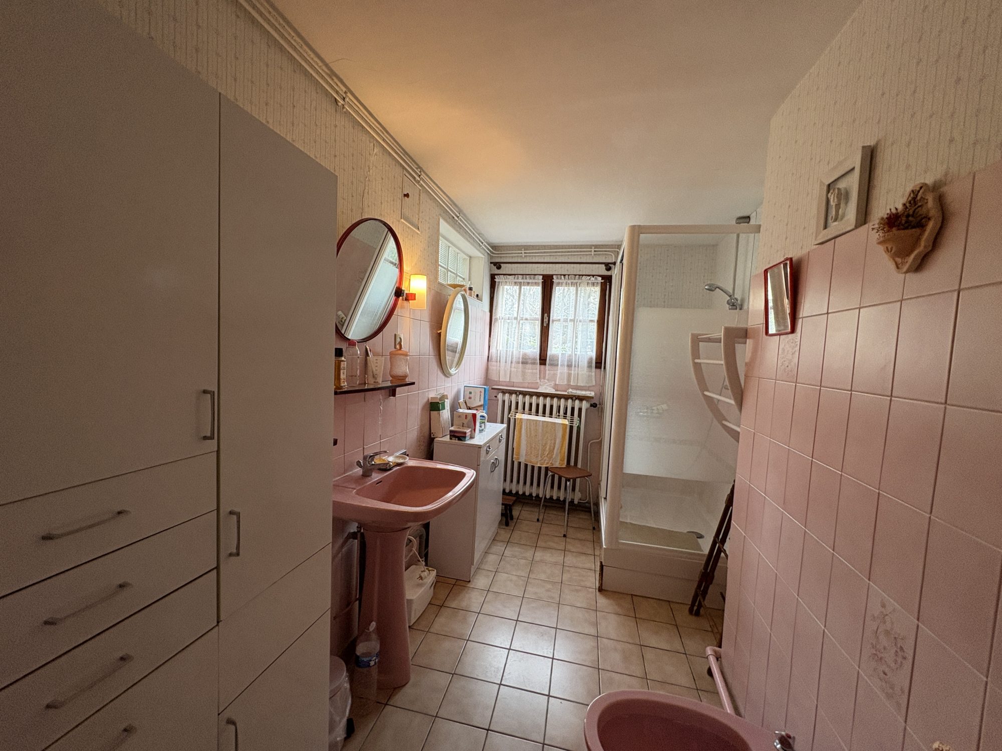 A l'étage, un dégagement avec un point d'eau et un wc desservant trois chambres.