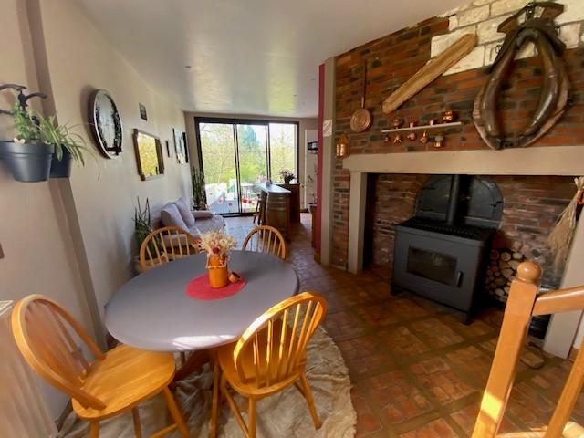D'un rez-de-chaussée divisé en salle de séjour, salon avec poèle à granulé, cuisine aménagée et équipée, salle de douche, deux chambres, w-c,