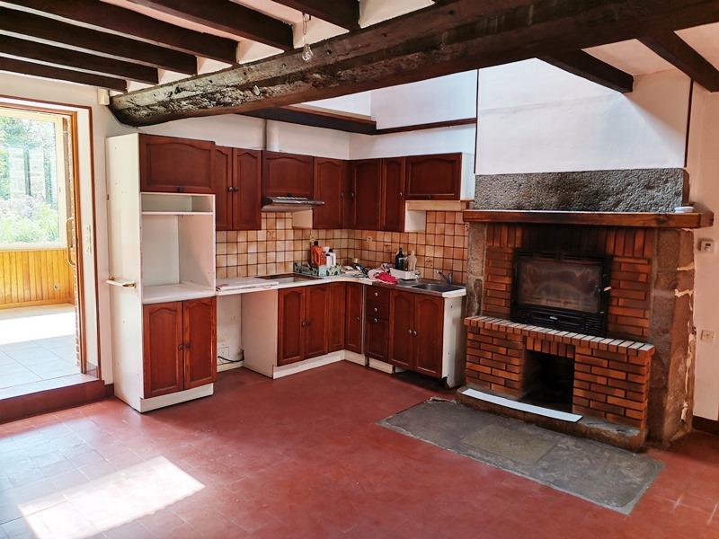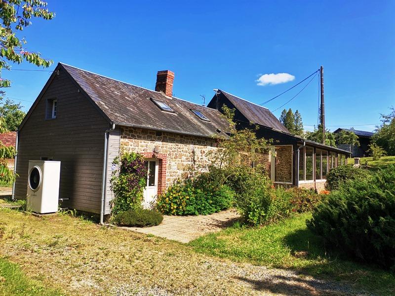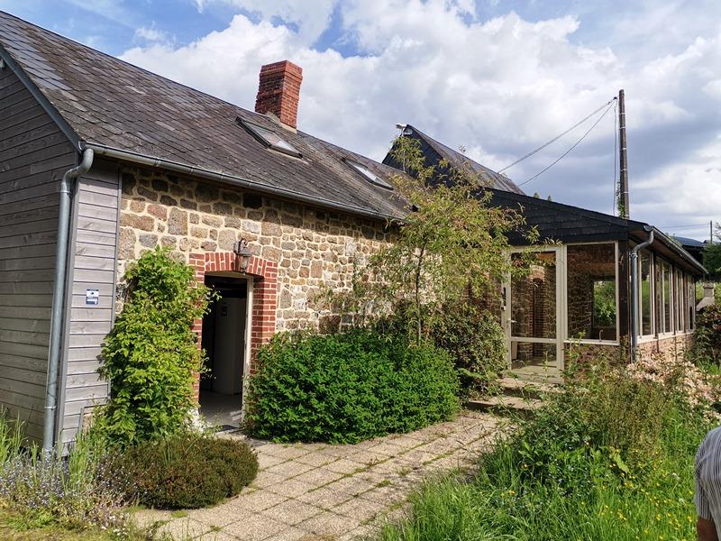 LE MENIL DE BRIOUZE: En campagne, maison d'habitation d'environ 130 m² habitable sur environ 1ha 60 de terrain, comprenant au rez-de-chaussée, cuisine avec cheminée insert 25 m², véranda 34 m², deux chambres, bureau, salle d'eau, wc, dégagement, chaufferie, à l'étage palier, mezzanine, une chambre, grenier, double vitrage, chauffage pompe à chaleur et cheminée, terrain avec puits, hangar, garage en bois, prix 158 000 € honoraires de négociation à la charge du vendeur