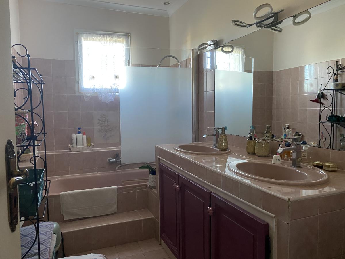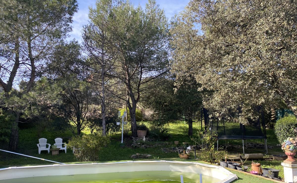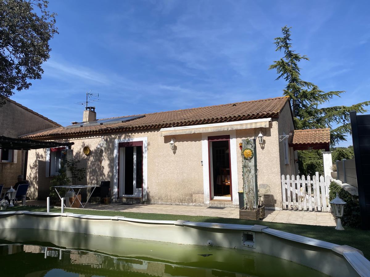 Située à POULX, à 15mn de Nîmes: Maison traditionnelle de 1986 avec extension en 2000, de type 6 et d'environ 130 m² habitable comprenant: un séjour avec cheminée, une cuisine équipée maçonnée, 2 belles chambres, deux plus petites ainsi qu'un bureau, et deux salle de bains. Quelques travaux sont à prévoir (carrelage, une salle de bains à terminer, liner piscine), mais un très beau potentiel . Elle dispose également d'un garage, d'une cave et d'une grande buanderie, d'un chauffage central par pompe à chaleur et d'un ballon thermodynamique relié à des panneaux solaires. Le terrain de 1250 m² est clos, arboré et sans vis à vis.