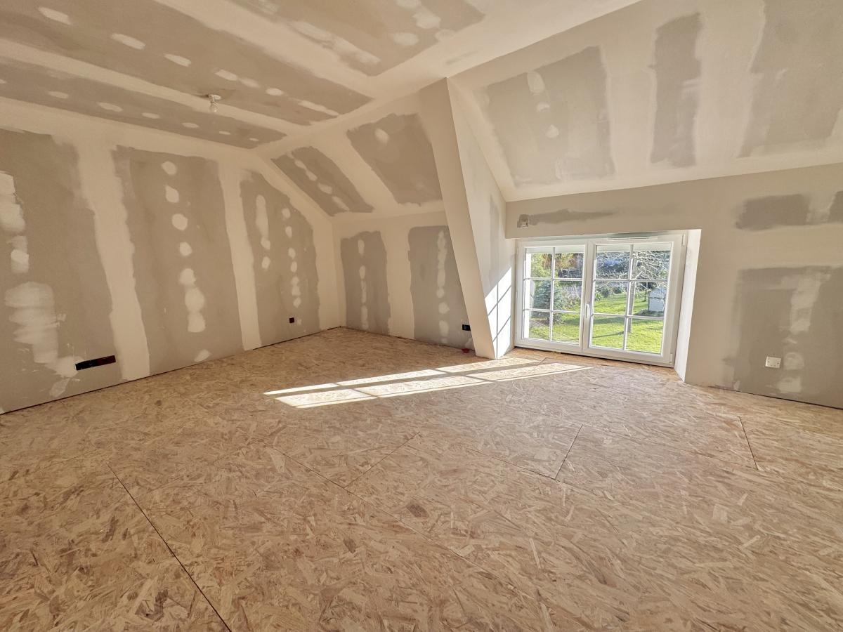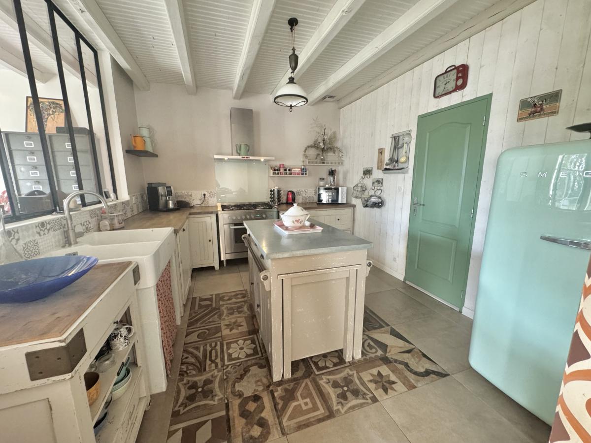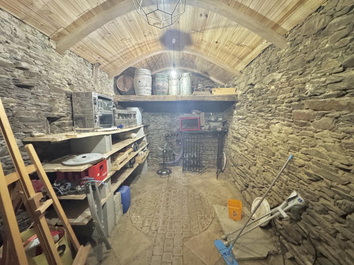 Dès l’entrée, les volumes et la luminosité séduisent : on retrouve une vaste pièce de vie agrémentée d’un poêle à bois. Pour la suite, la cuisine aménagée, l’arrière-cuisine et l’accès direct à la cave complètent le tout.